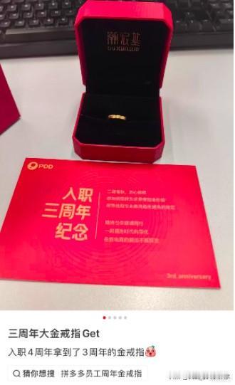 拼多多这次发黄金, 事情没那么简单。 100克金砖拿到手里是沉的,但比金子更沉的,是员工在这家公司度过的时间。三年、五年、十年,戒指上刻着名字,公司用这种不会贬值的东西,把人和企业绑在了一起。 外人看的是黄金的价值,老员工摸到的是时间的分量。拼多多这几年增速放缓,利润也有所下降,但在留人这件事上,它比以往更舍得。去年给十年员工的还是60克金鸡,今年直接加到100克,这背后是互联网行业留人越来越难的现实。有人算过,100克黄金差不多是一个资深员工年薪的三到五成,但比起重新招人、培训的成本,公司反而划算。 拼多多平时强调“过苦日子”,但在关键节点上,它从不含糊。这种反差让很多人意外,却恰恰暴露了它的算计:用即时、看得见的硬货,去对抗行业普遍的高流动率。金子上不刻公司口号,只刻员工姓名,这是一种很直接的暗示——你是被记住的,你的时间没白费。 当然,也会有人觉得这是糖衣炮弹,用金子换青春。但现实中,多少人一边抱怨工作强度,一边又因为公司愿意为忠诚买单而留下。拼多多只不过把这场交易变得更直白:你付出岁月,我回报真金。 这件事好的一面是,企业终于开始用长期价值看待人才。不是画饼,不是期权,是当下就能揣进兜里的保障。不好的一面是,当黄金变成一种制度,会不会有人只为金而留,反而忘了工作的本质?不过眼下,能让长情的人不被辜负,总是好的。