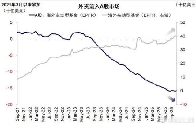 虽然北向资金的数据关闭了,但从EPFR的统计口径就能看到,主动基金流出速度已经很慢了,而被动基金已经在大幅加仓了。