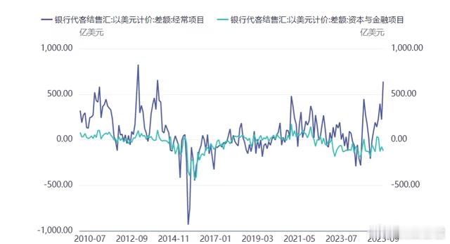 一、跨国资金回流创十年纪录9月份,结售汇整体顺差510亿美元,大概是3626亿人民币。来到了有史以来的高位区域。见下图。