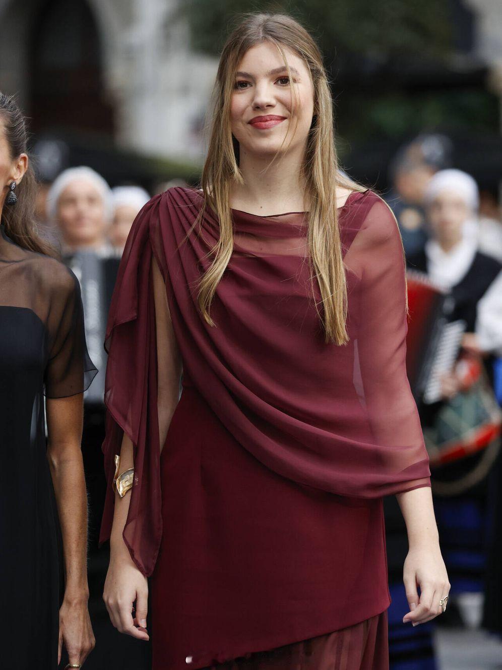 出席阿斯图里亚斯公主奖的索菲亚公主,绉纱连衣裙来自西班牙本土品牌Miphai,裙子有着方形领口、宽肩带、喇叭裙摆和侧开叉,目测都是她喜欢的元素。时尚穿搭