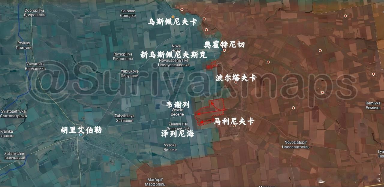 9、大米哈伊利夫卡:俄军在第聂伯罗彼得罗夫斯克州界的“斯科托瓦塔亚巴尔卡”山谷清除了数个阵地,还重新向维什涅夫推进,并开始进攻叶霍里夫卡。此外,俄军还收复了新谢利夫卡北部地。