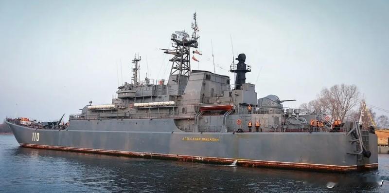 “亚力山大·沙巴林”号登陆舰属于775型登陆舰,该型登陆舰是为了取代已经过时的1171型登陆舰而设计的。 具体到“亚力山大·沙巴林”号,该舰由华沙的“格但斯克”造船厂在1985年开始建造,1986年1月14日下水,并于当天升起苏联海军的旗帜加入苏联海军,当时该舰被命名为登陆舰-60,后来改称“亚力山大·沙巴林号”,在登陆舰-60/“亚力山大·沙巴林”号加入苏联海军的时候该舰的隶属关系被分配给苏联海军的波罗的海舰队。 至于说“亚历山大·沙巴林”这个名字,其来源于两次“苏联英雄”称号获得者,苏联海军少将“亚历山大·沙巴林”。 另外,华沙的“格但斯克”船厂建造过28艘775型登陆舰,其中大多用来出口,目前莫斯科海军当中还有13艘该型军舰在服役当中。 再补充一下775型登陆舰的参数:满载排水量4497吨,可以搭载10辆坦克/20辆装甲车和340名士兵。 虽然“亚历山大·沙巴林”号已经有差不多40年的历史,但在2年前,该舰刚刚由莫斯科造/修船业完成大修,所以目前该舰技术状态亦属不错。