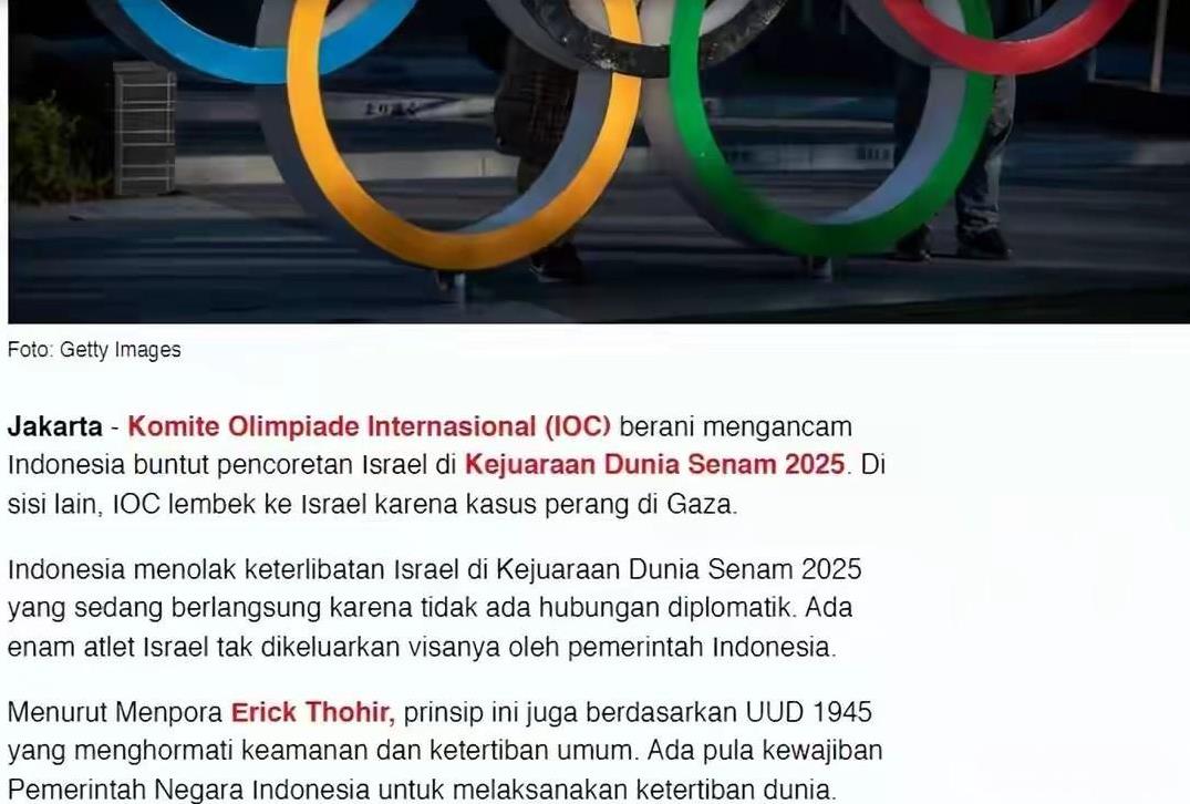 印尼硬刚奥委会双标 第53届世界体操锦标赛期间,印尼因以色列在加沙地带实施种族灭