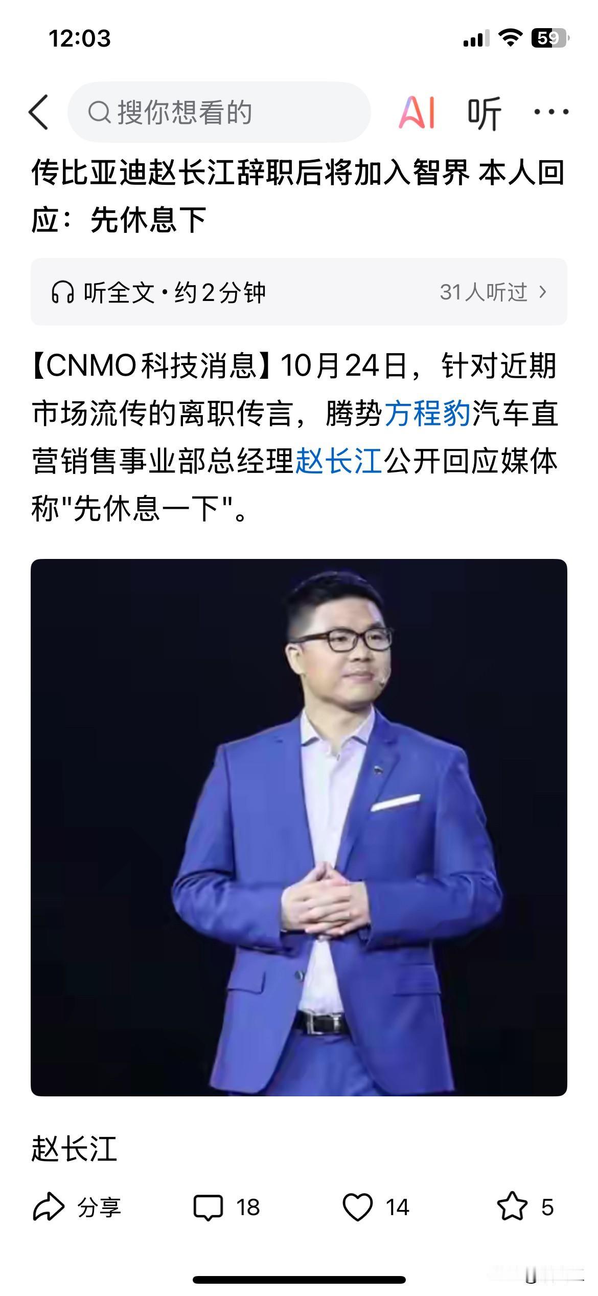 比亚迪赵长江的离职, 不是被友商挖走了, 不是比亚迪呆不下去了,而是腾势这个品牌已经被赵长江带起来了,使命完成了! 现在的比亚迪靠王朝和海洋占领了市场, 靠仰望打开了高端百万级市场, 靠腾势又占领了MPV和中端市场, 可以说市场布局已经完成,接下来赵长江该去别的地方继续发挥余热了![赞]