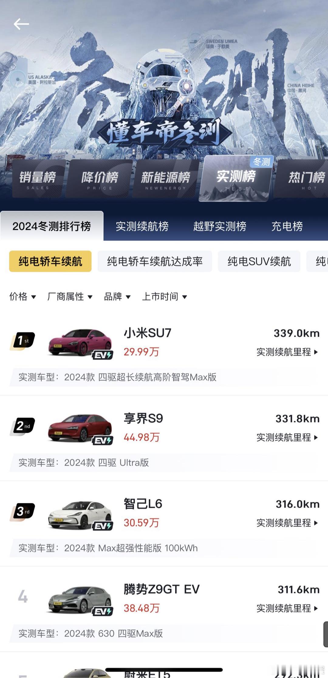 回想去年SU7,也是直接包圆了冬季测试,今年YU7这算是“家族基因”了。当然,我也盲猜一波,就算真到了零下的冬天,估计YU7还是第一。