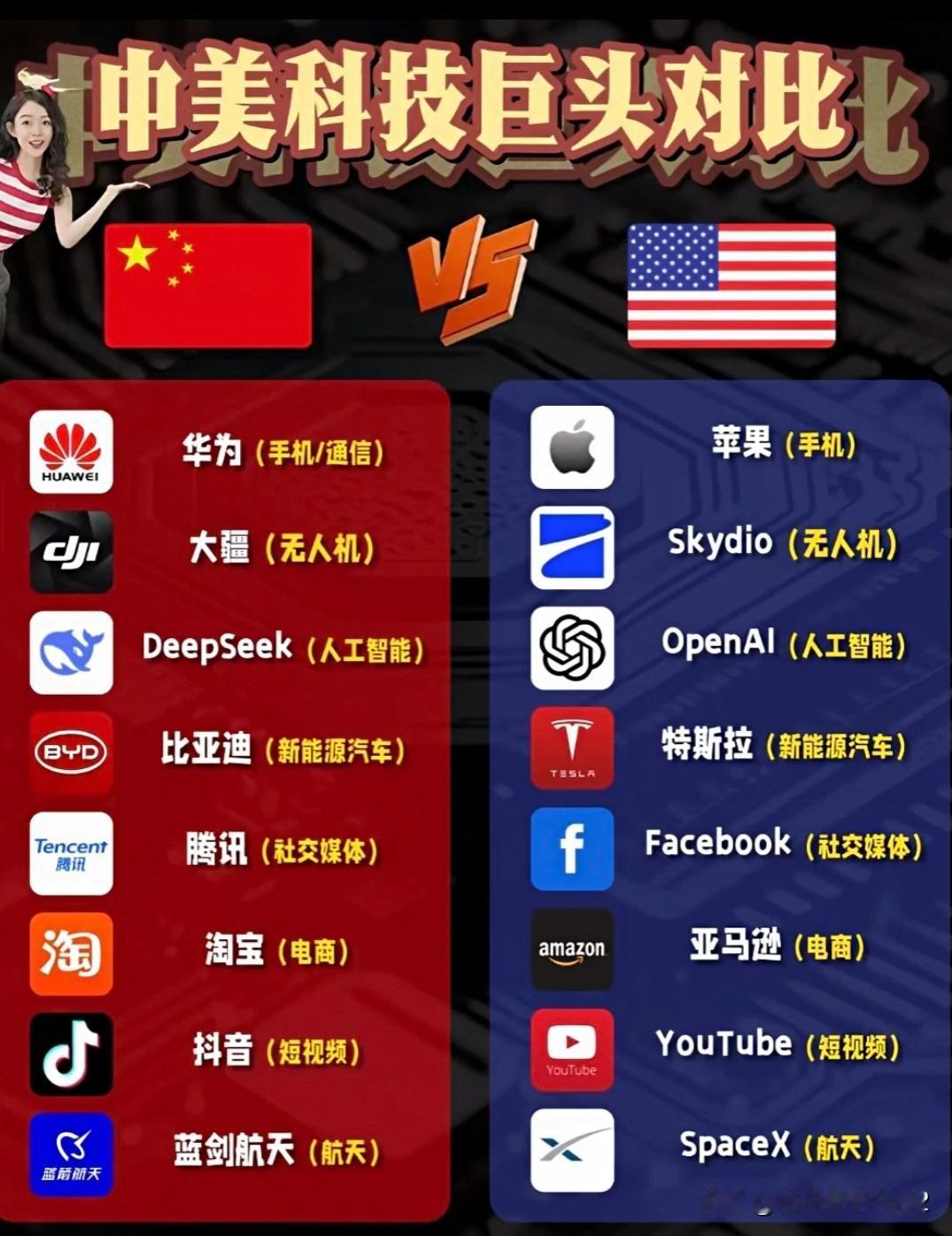 在每个科技领域中国巨头都把美国对应企业咬的死死的。
