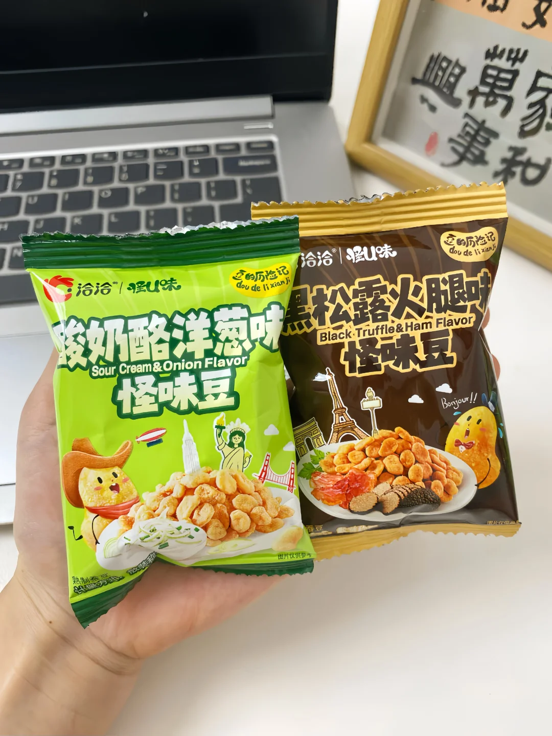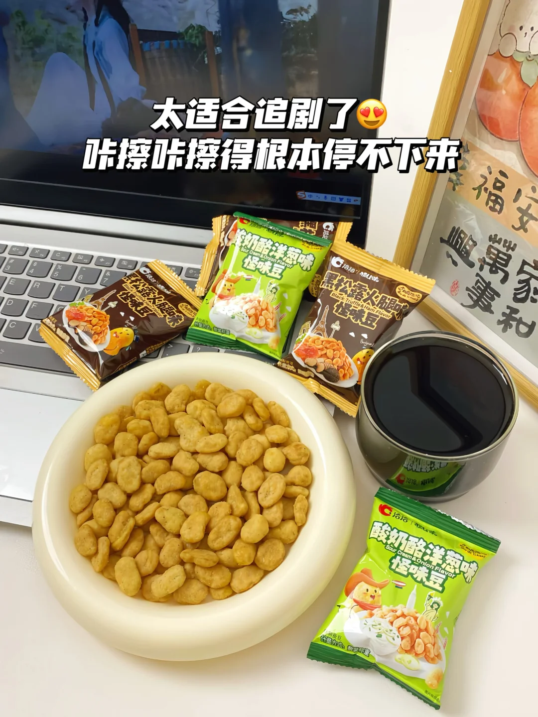 追剧的快乐,全靠洽洽这个怪味豆了! 一口下去嘎嘣脆的口感!好香好香~ 我超爱这个酸奶酪洋葱味🧅一口惊艳谁懂!酸甜奶酪结合清新的洋葱 ,吃起来咸香酥脆~后味还有股奶酪香!吃起来好上头啊🤤 还有一个黑松露火腿味!打开就是浓郁的黑松露香味扑鼻,跟咸香火腿的搭配太美妙了!咸香可口,每一颗都裹满了粉料好入味啊!一颗一颗的根本停不下来了! 关键还是0反式脂肪酸!!自律期姐妹也能解解馋哦😲 趁着双十一囤了满满一箱!追剧的时候拿出来吃,根本停不下来了!!