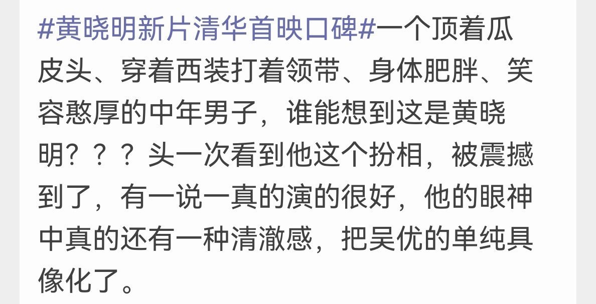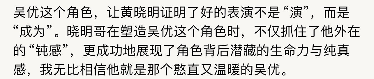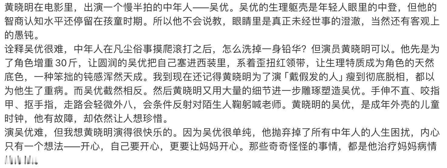 黄晓明在《阳光俱乐部》里演活了吴优!为贴近特殊人群角色,他实地体验、增重30斤,从神态到气质都透着天真感。观众看片时难认出演者是他,完全沉浸在角色故事里,这份“让自己消失”的演技,太见功力!