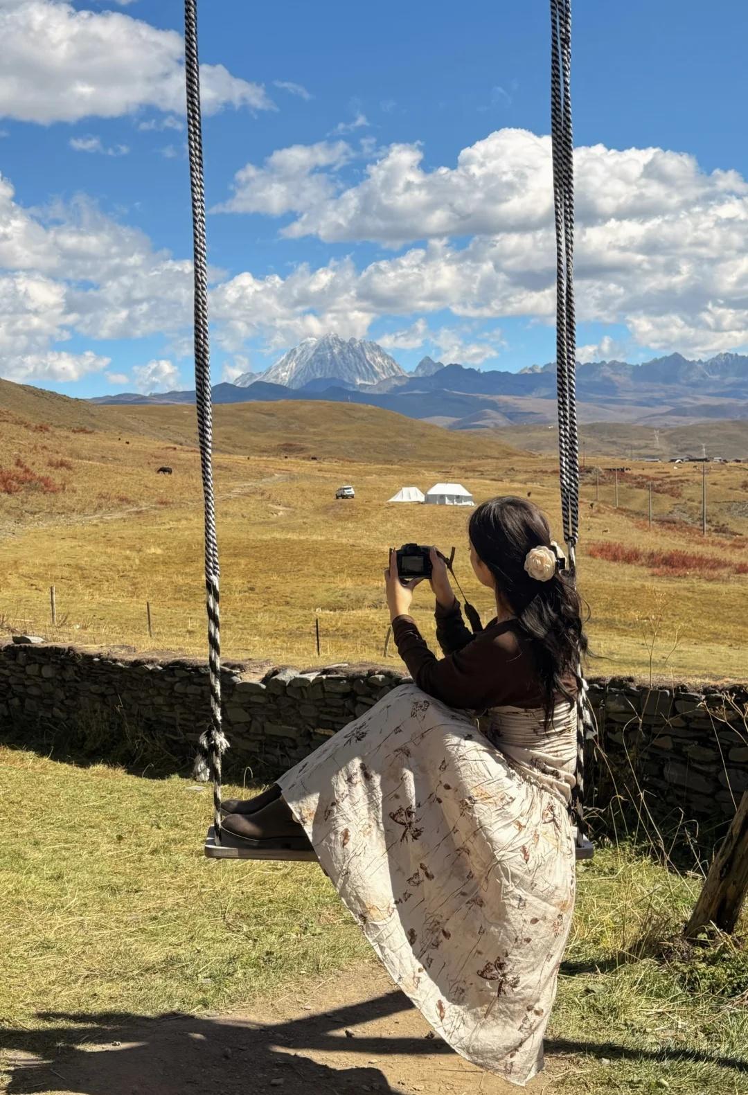 川西你美🍂 在岗日噶玛拍到了人生照片📷 第一天在格迪拉姆被吹傻了 本来计划第二天冷嘎错直接取消到了塔公一路上风景不错~ 川西旅游 旅游穿搭 岗日达瓦岗日噶玛 塔公草原