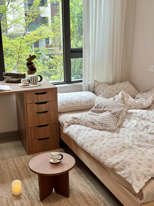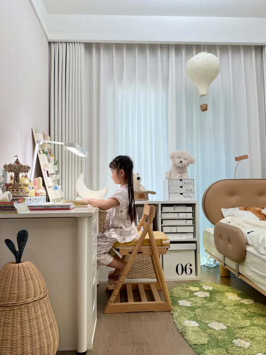 3年前,成功卖掉了高楼层 置换了3楼树景房🌲 坏消息,是面积更大一点,但亏了更多… 家里 不是中古风,也不是法式风 是适合普通牛马生活的家 女儿有自己的卧室和走廊“会客厅” 老人有喝茶的小阳台🍵 我们也有自己的喜欢的那片绿🍃