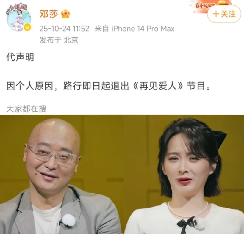 但是路行这个是,还是有良心的,他想着上个节目,给邓莎带一波流量,看她能不能翻红一下,这样他也离得安心一点。