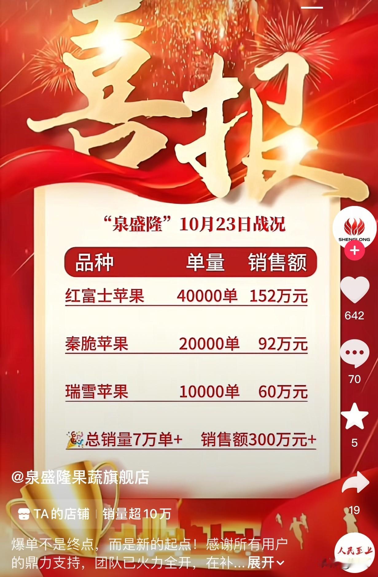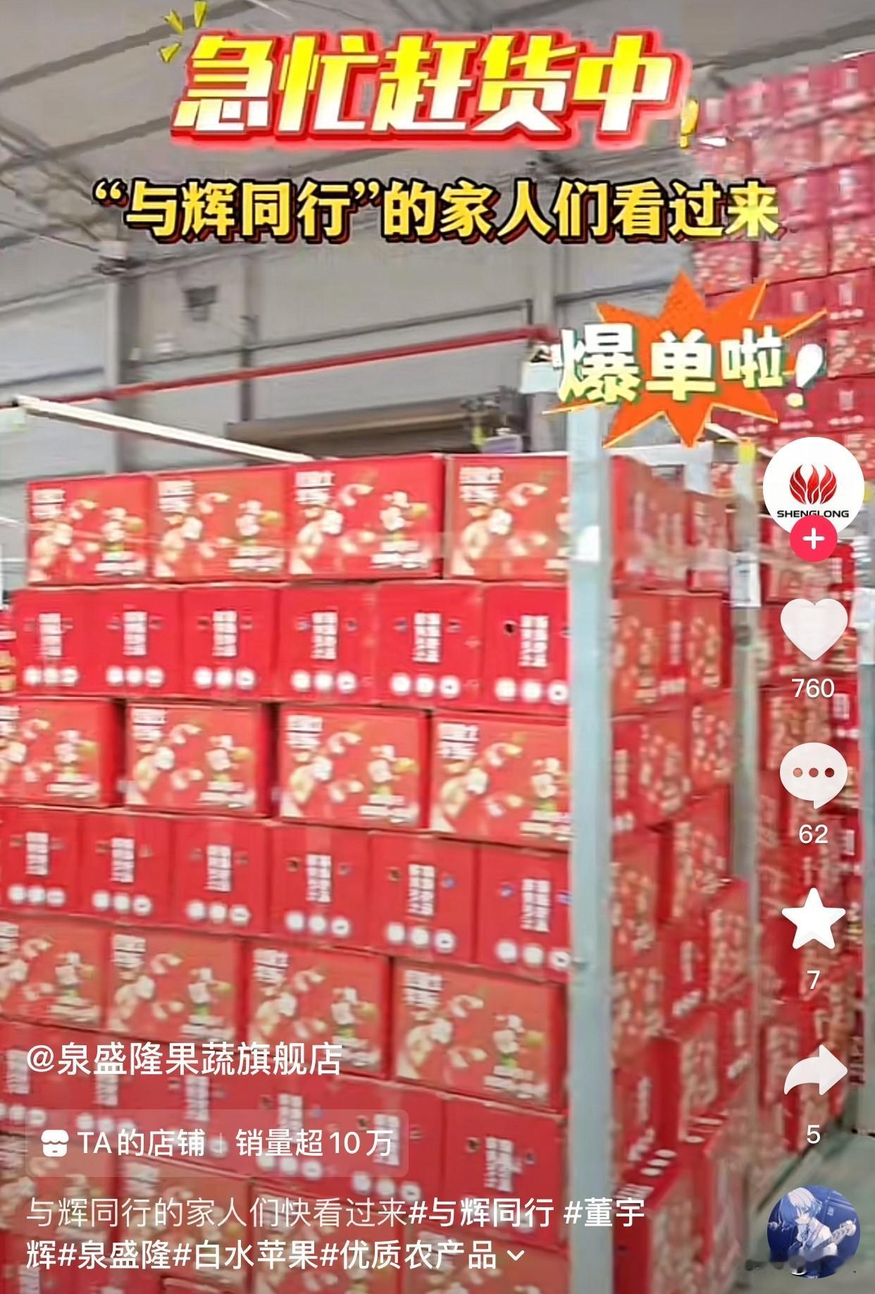 董宇辉给苹果开会那天 其中一个商家发了喜报 当天售出苹果7万单,销售额300万元 而且这两天依然在疯狂出单 今天发视频说他们爆单了,急忙补货中 与辉同行有不下10个商家在卖苹果 而这一个商家,一天就卖了300万元 再加上这几天杨凌农博会 他们还能不断爆单 果农们也可以跟着赚个盆满钵满 好好的过一个丰收年了 这难道不是电商带货的意义? 凡事都有利有弊 总要看看是利大于弊还是弊大于利 如果是显而易见的结果 就真没必要讨论了 干翻实体的是互联网时代 而不是电商模式