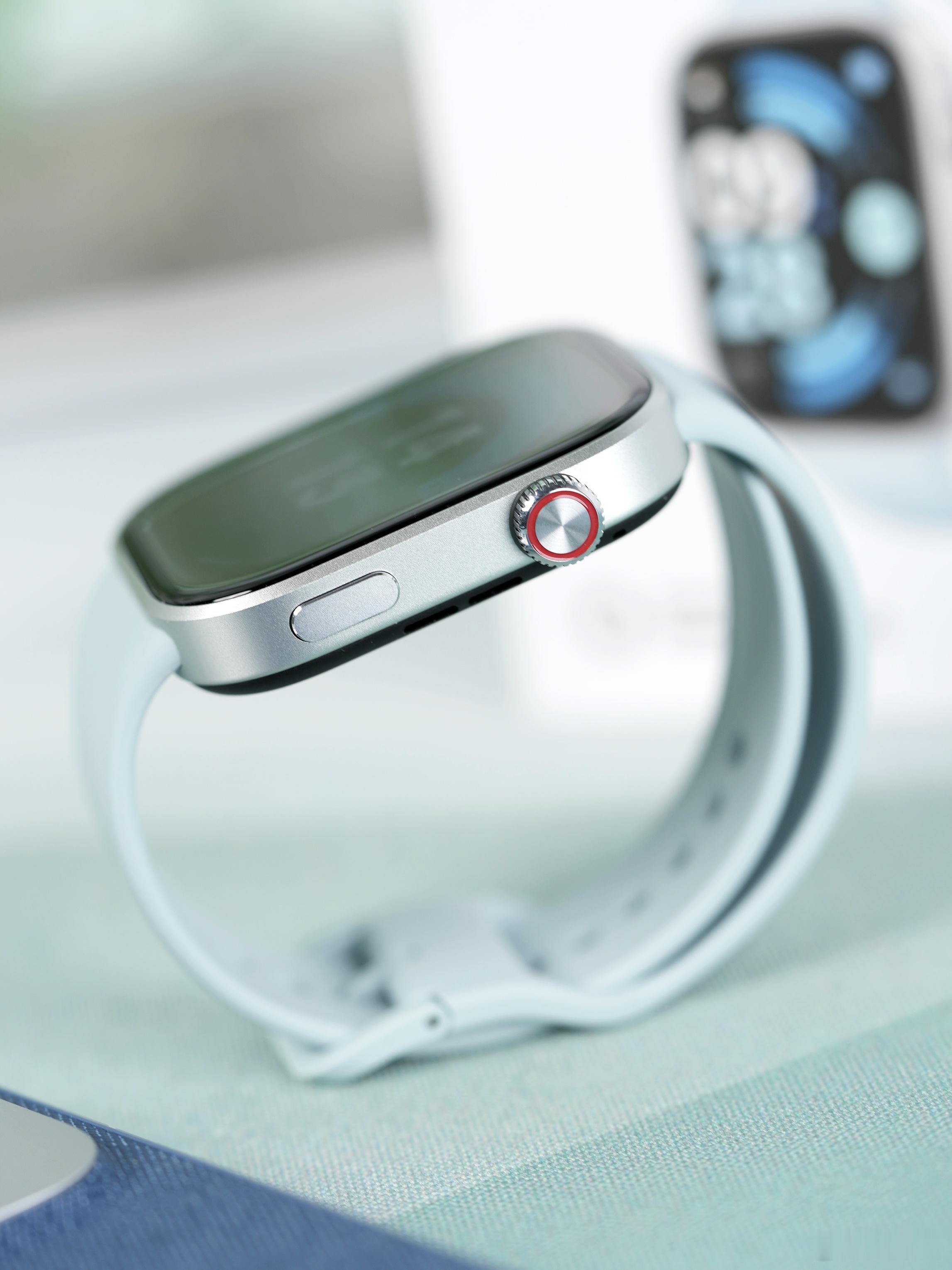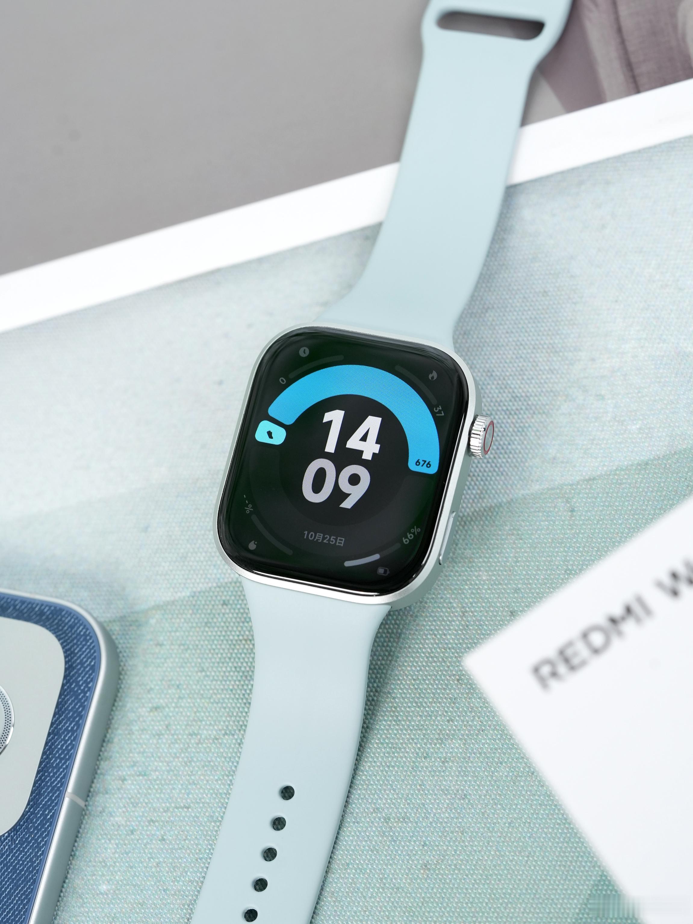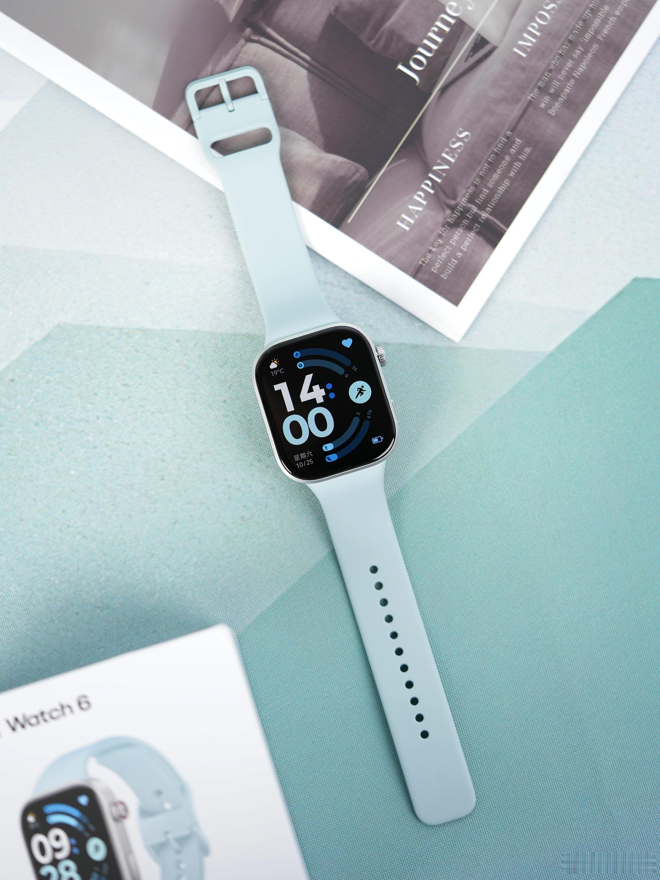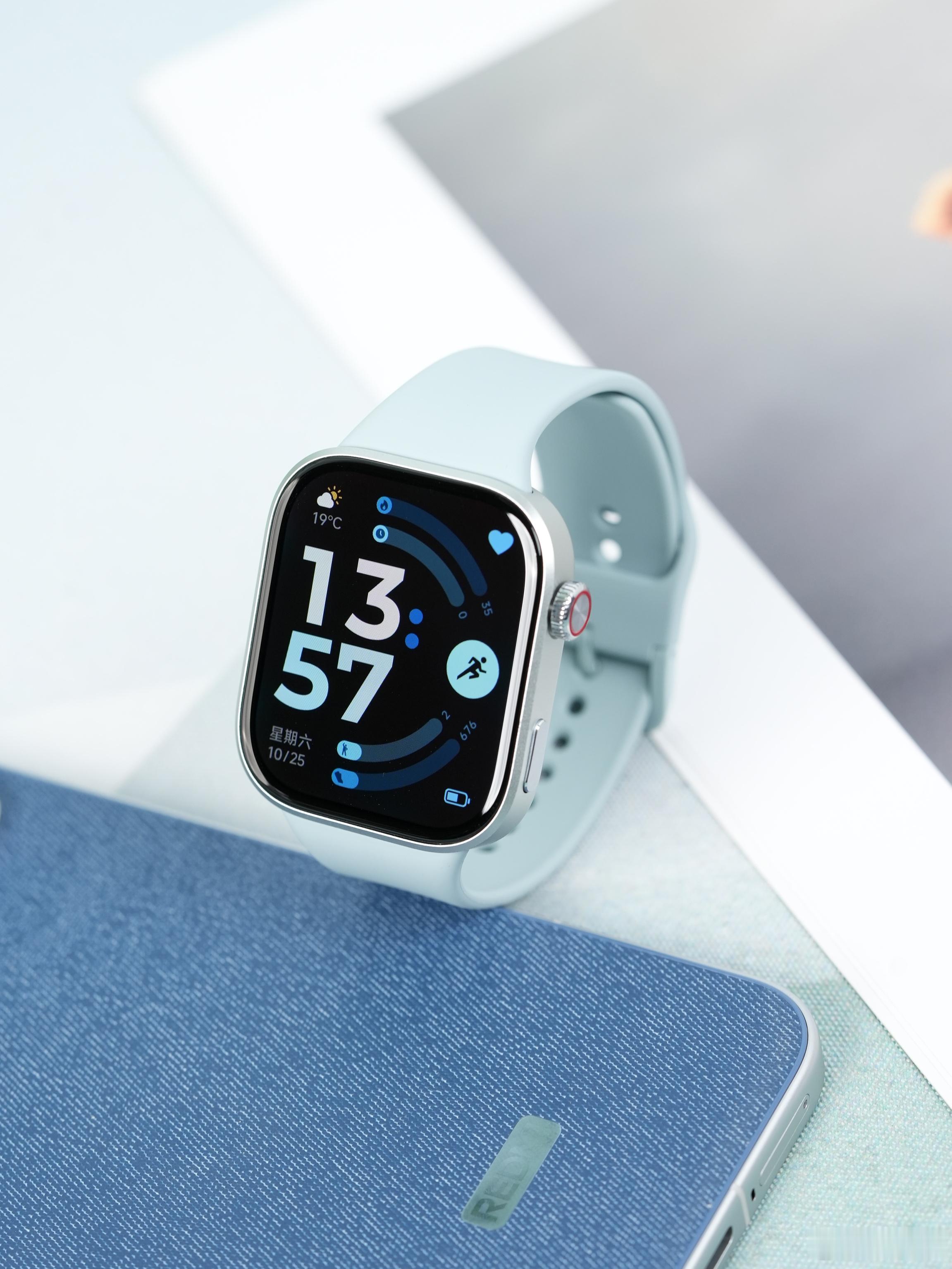 这一代的REDMIWatch6也是更精致了,2.07英寸四等边方形屏幕加上高强铝合金表框,只有9.9mm厚,屏幕发光材料也有升级,峰值亮度来到了2000nit,整体无论是观感还是质感都相当好