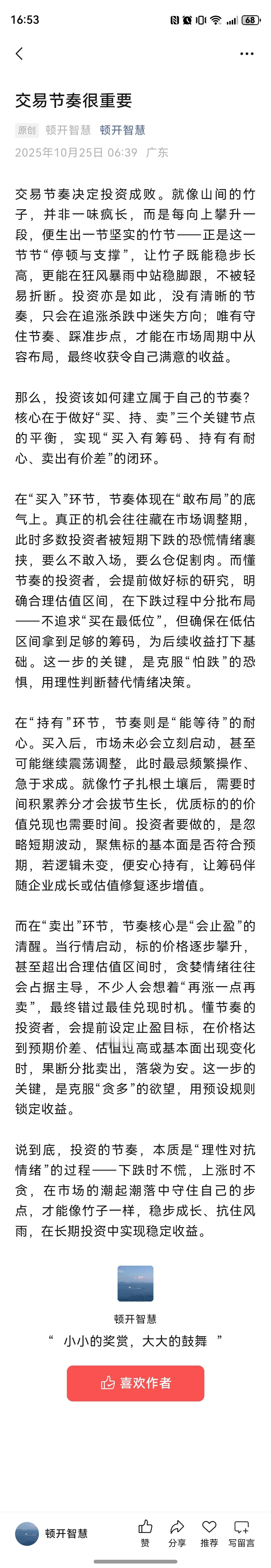 交易节奏很重要