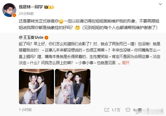 王玉雯晒合照表白刘亦菲,林一在评论区的“小别扭”超有趣。这对迷妹迷弟的互动满是可爱,让人跟着感受到追星的纯粹快乐。