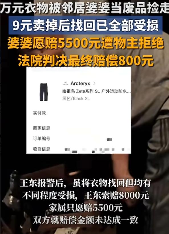 一万多的衣服,被88岁邻居张婆婆9块钱当废品卖了,小伙子王东直接起诉索赔两万二,连精神损失、误工取证都算进去,结果法院只判了800。这事儿一上热搜,网友炸锅! 别人家门口的东西不管是不是废品,如果不是别人丢弃或者可赠予他人的东西,任何人随意拿走,那就是偷窃! 古人还知道路不拾遗、这在别人家门口的东西、而且还是包装好的衣服,说以为是垃圾鬼信吗? 说白了就是侥幸心理的偷盗行为。 这些个老太婆仗着自己年龄大了,名义上是捡垃圾,实际上是连捡带偷的,心里明白着呢!逮住就给你装糊涂,法律能把我怎么样? 现在有个现象,绝大多数小区,包括中高端小区都有大量的老人四处收集纸箱和塑料瓶卖,而且确定是本小区的人员,这是什么社会现象?