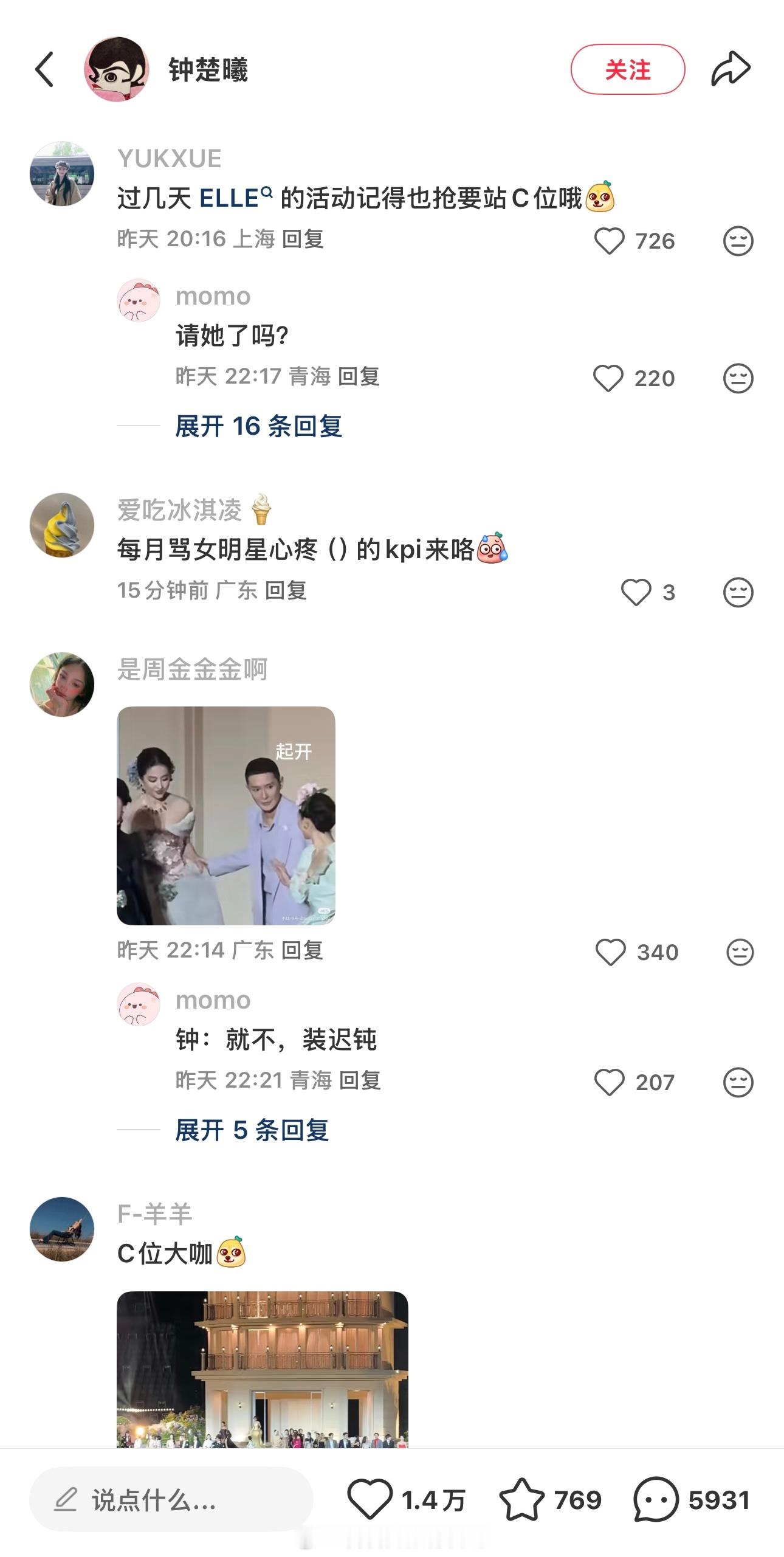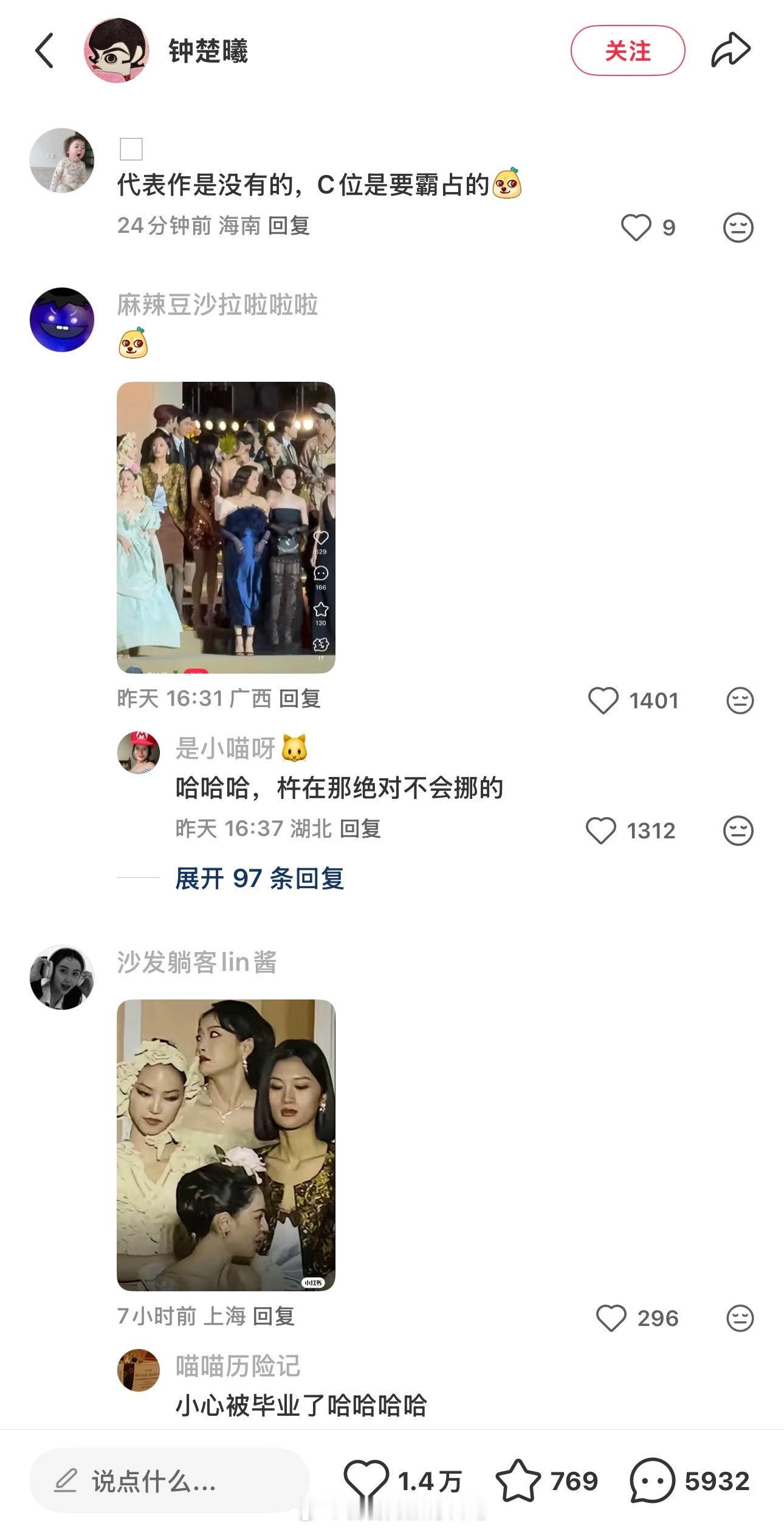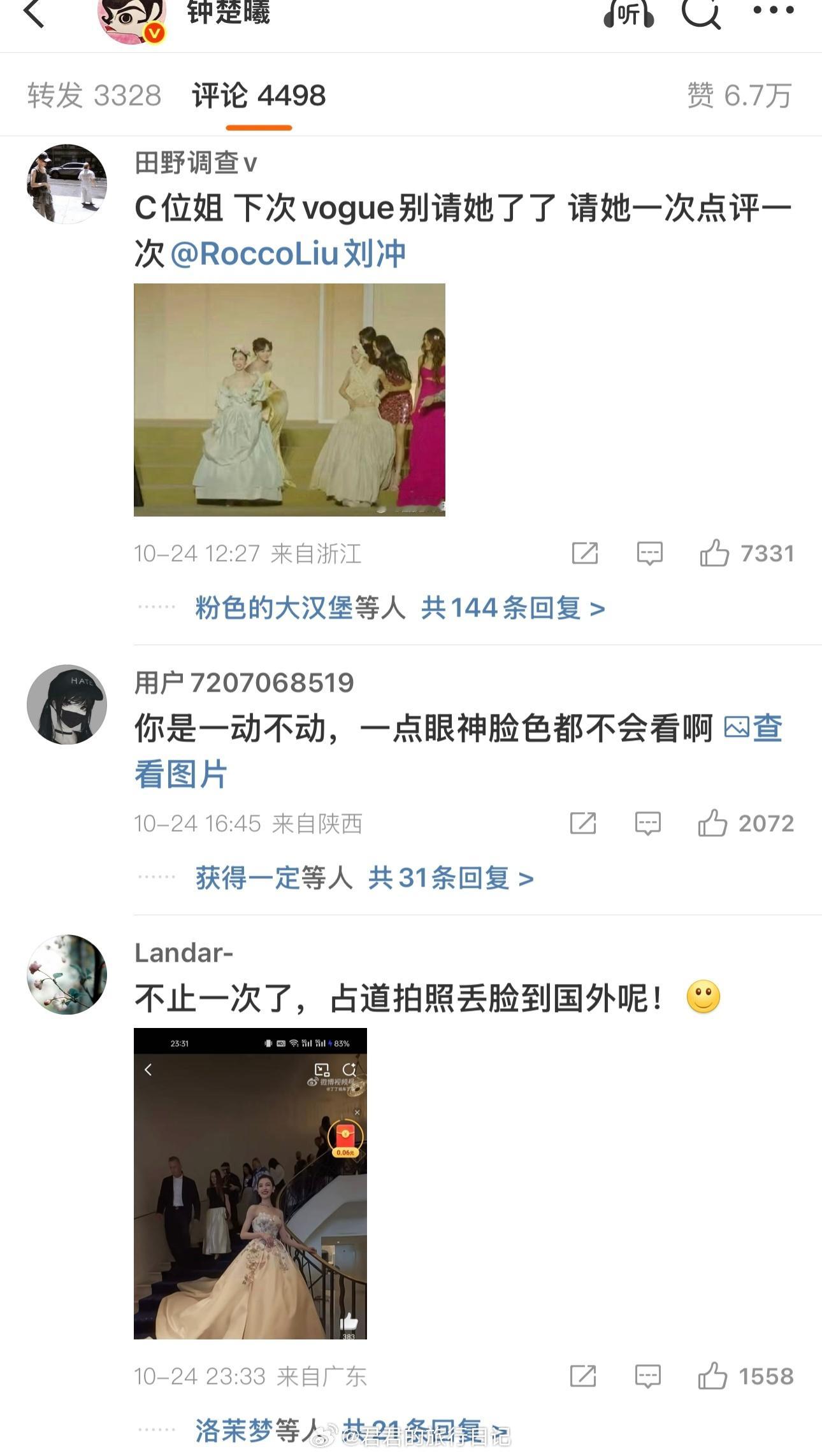 因为vogue盛典的C位风波,钟楚曦的所有平台评论区全部沦陷