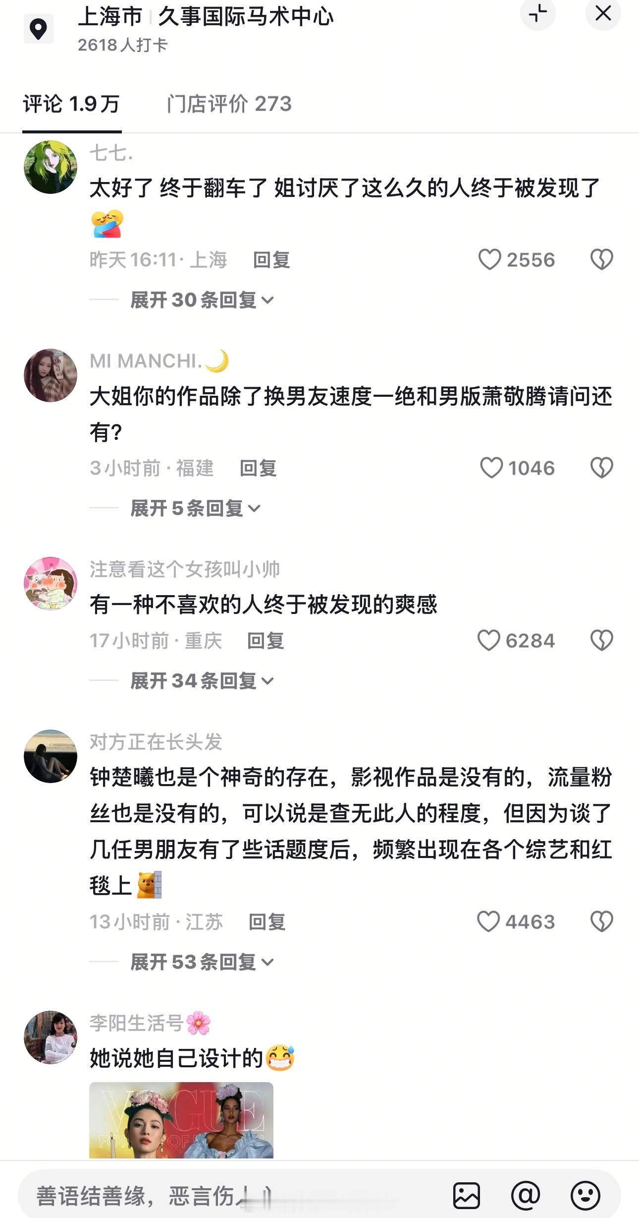 钟楚曦的官博都已经沦陷了,评论区全是审判她抢c的抖人已赐名:钟杵C