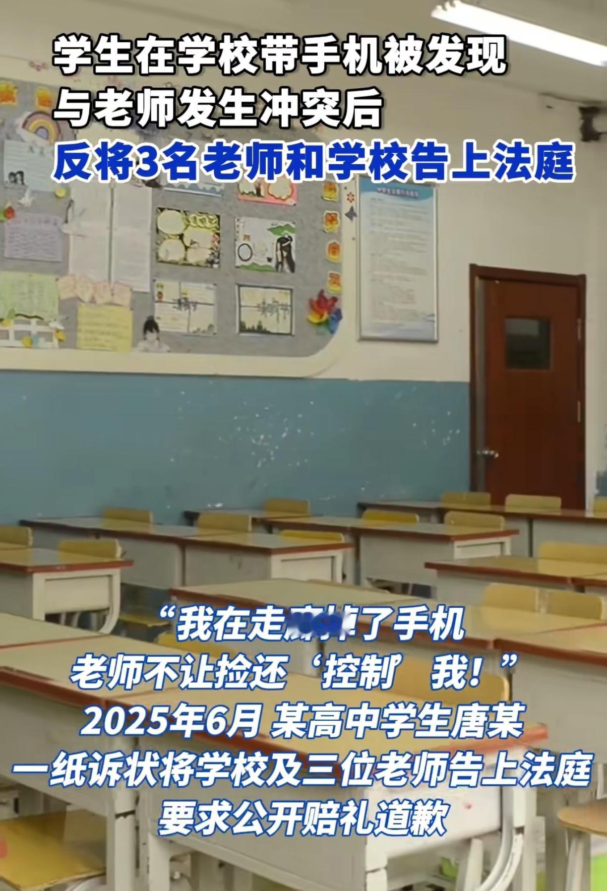 这波站老师准没错,支持学校不让带手机 这孩子起诉老师这事就是教育悲哀 如果是因为别的事情和老师起冲突还可以商量,现在是明令禁止的带手机,大家都上交了,怎么这个孩子就不遵守呢? 还想要老师陪他赔礼道歉,真不能理解 主要是这么小的孩子不懂怎么起诉老师吧,家里一定是有个熊家长的! 这种说白了就是家长的纵容,不以为耻反以为荣的典型。如果说老师不能管教你家孩子,你可以不去上学啊,自己留在家里照顾不是更好! 难不成真的要把老师逼成那种不负责任的,不管学生,作业爱交不交,交了就批改,不交也不追着要,到点上课到点下课,根本就不管知识点讲没讲完,学生来问就交,不问就算了,这样家长们就爱看吗?