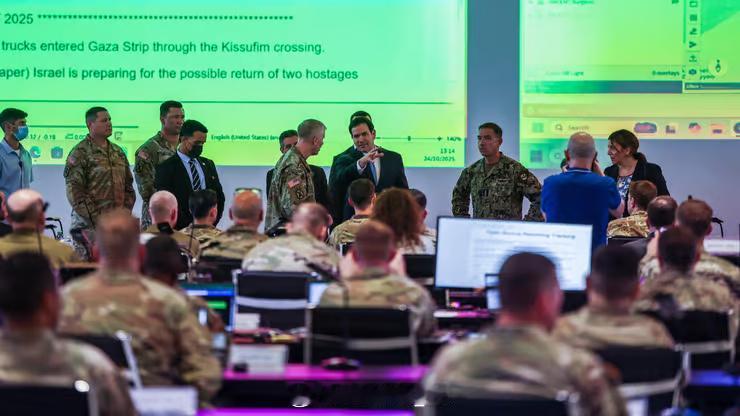 驻以色列美国仆从军司令部的一些内部画面因副总统万斯的视察而被公布,看着除了美军还有法军和戴西班牙臂章的。