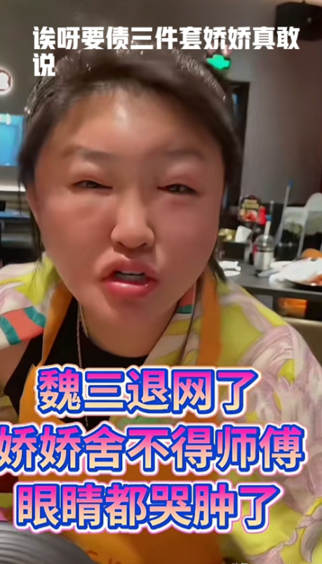 娇娇被揍了吗,干成这个鬼样子,嘴里说着干架三件套,嘴里不停的开炫,同行的小伙伴都笑疯了,说着这也不耽误吃。还有网友写魏三太狠了,也有网友说魏三退网了,娇娇太舍不得了魏三了,火辣辣哭的,但是我的800度大眼镜告诉我好像整容失败了吧。。这一天天这几个人都赶上唱拉场戏了还带续集的。。。