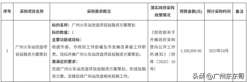 投融资方案招标,广州火车站改造终于要来了? 作为改造前期准备工作,该方案直接关系到火车站改造工程的资金来源与落实,是决定项目能否顺利推进并进入后续设计、施工阶段的基础。 目前,广州火车站改造项目遇到最大的障碍还是巨额资金怎么落实、如何改造、多方主体协调等难题,这些问题如果能一一解决,那么广州火车站改造全面改造,也是指日可待! 广州火车站改造也是迫在眉睫,方案迟迟落实不了,11号线不得不飞站,14号线二期距离火车站一步之遥,止步乐嘉路。还有在建的22号线北延段,火车站明年能否一起开通也是未知数。 更为重要的是广州火车站片区旧改进展神速,瑶台一期安置房开始建设,三元里村也已经进入全面开拆阶段。 如果广州火车站改造还只是停留在ppt阶段,没有实质性进展,不仅拖慢整个火车站片区项目改造进度,影响片区产业升级,也发挥不了高铁和轨道枢纽作用。
