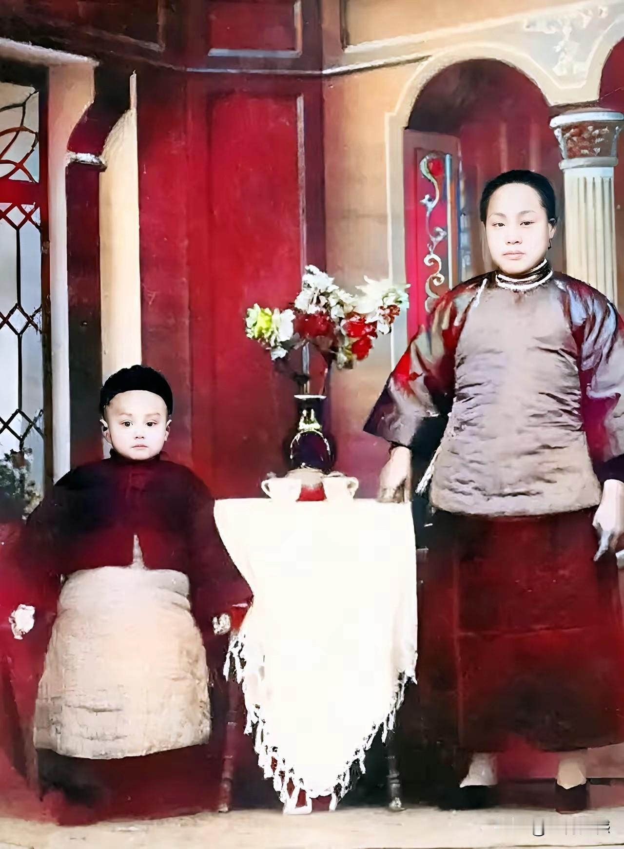 杨振宁先生和母亲在一起,虽然这是一张经过上色修复的照片,但是看起来也是比较接近于真实的,杨振宁先生的相貌和母亲非常像,他对母亲的感情也特别的深,因为在他很小的时候,父亲在国外留学,家中只有他和母亲相依为伴,杨振宁先生的母亲非常了不起,知书达理,自强不息!