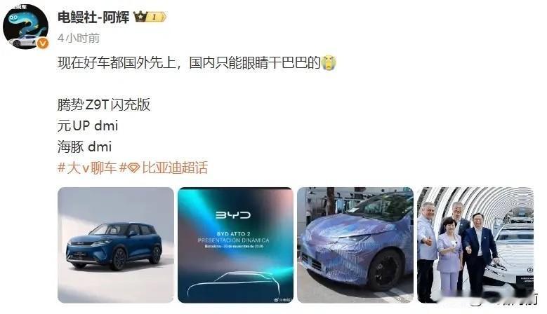 比亚迪你变了,变得我不认识了。 好车要先在国外上市了。 以前提起比亚迪,那可是“宠粉狂魔”,什么DM-i混动、刀片电池这些硬核技术,全是国内先首发,国外得落后个一两代才能摸到。那时候咱看着合资车溢价,心里都稳得很:咱有技术兜底,不怕! 可现在倒好,反向操作给我整懵了。腾势Z9T闪充版、元UP DM-i、海豚DM-i,一堆新车先往国外市场怼,国内连个确切上市信儿都没有。最让人抓心挠肝的还是那台鲨鱼皮卡,在澳洲、墨西哥卖爆了,累计出口都破4万辆了,国内车友眼馋得不行,它就是不来! 还好官方最近松口了,说鲨鱼皮卡国内在规划中,迟早会上。但这话听着,总觉得像“画大饼”,啥时候能真开上还是个谜。 更气人的是,这节骨眼还有人扯“技术无用论”,说啥“情绪价值比技术重要”。我真想问问这些人:忘了以前被合资车坑的日子了?当年人家拿落后技术卖高价,咱不就是靠比亚迪这样的企业死磕技术,才吃上“细糠”的吗?没有DM-i把混动价格打下来,没有刀片电池撑着安全底线,哪来的新能源汽车普及?所谓“情绪价值”,没有技术打底,不就是割韭菜的幌子? 其实冷静下来想,比亚迪这么做可能也有自己的算盘。海外市场对新能源皮卡需求旺,先拿成熟产品打开局面,也是打品牌的路子。而且腾势进军欧洲、巴西,带着易三方这些核心技术去闯,本质也是给中国车企争面子。 但咱话说回来,海外市场要攻,国内基本盘更得守啊!毕竟最早支持比亚迪的,还是咱这些国内消费者。