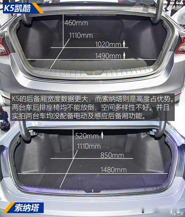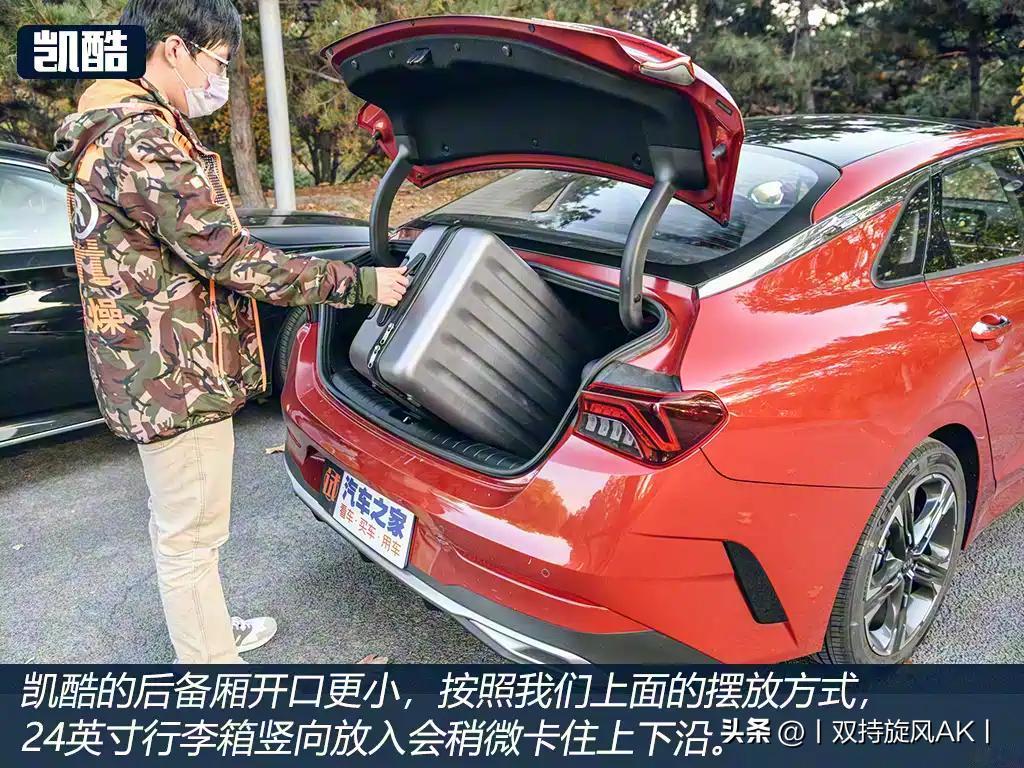 看过几次起亚K4,一直觉得这货后备厢空间不比大一号的K5差,看了实测数据果然如此。K4后备厢的宽度和深度都和K5不相上下,高度(对轿车后备厢最重要)反而还比K5多了6cm。以我资深轿车党的经验,50cm的后备箱净高是轿车装东西方便与否的分水岭。K5就是因为短尾溜背造型强行设计成三厢格局,净高只有46cm,开口肉眼可见的窄。而K4这个后备厢的空间已然达到了常规三厢B级轿车的水平,并且后排也没因此缩水。除了动力,K4和K5的主要产品点其实没什么实质性差距,算得上美国A级轿车里性价比一哥了。