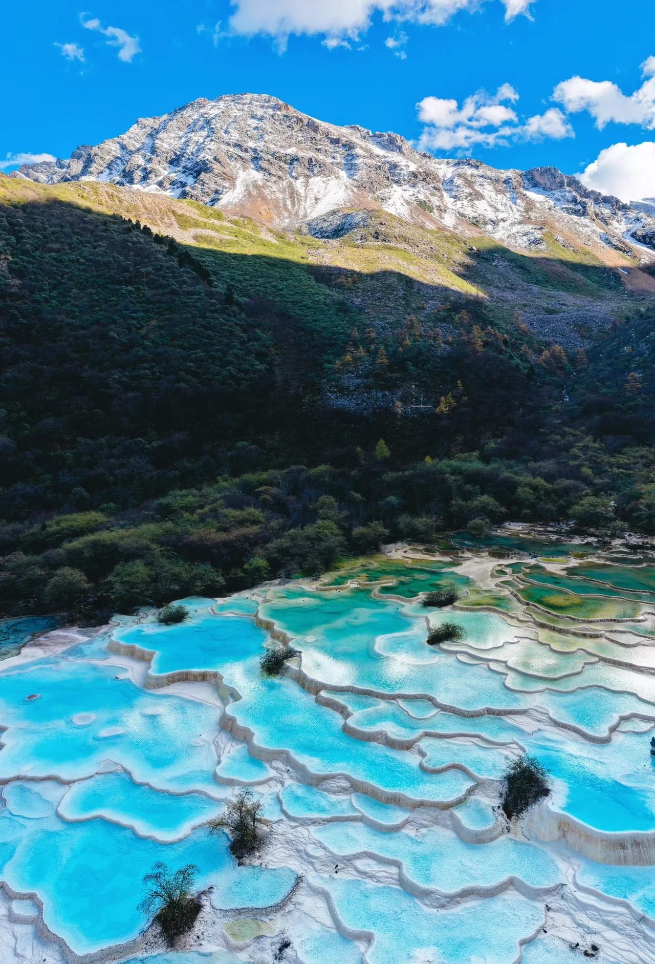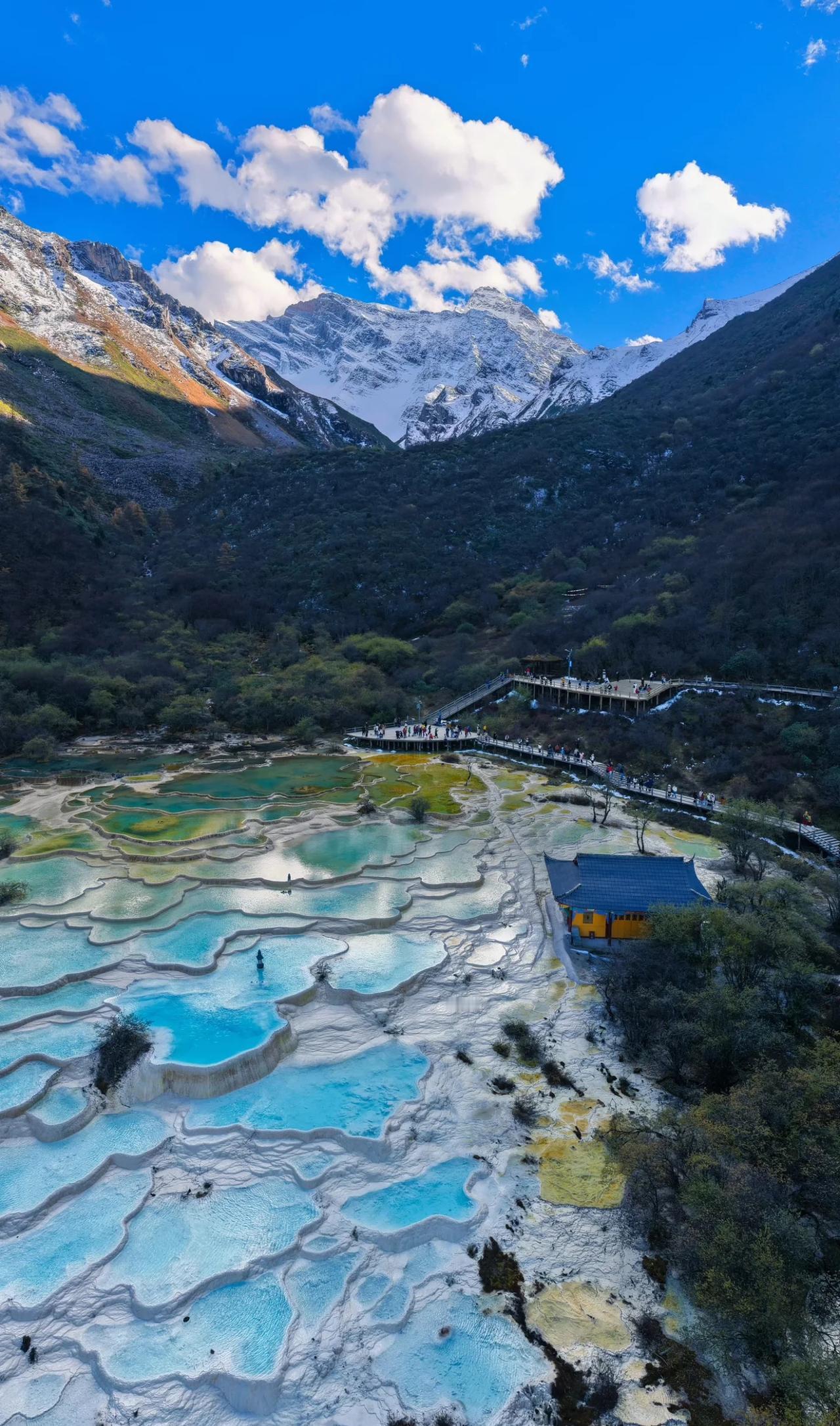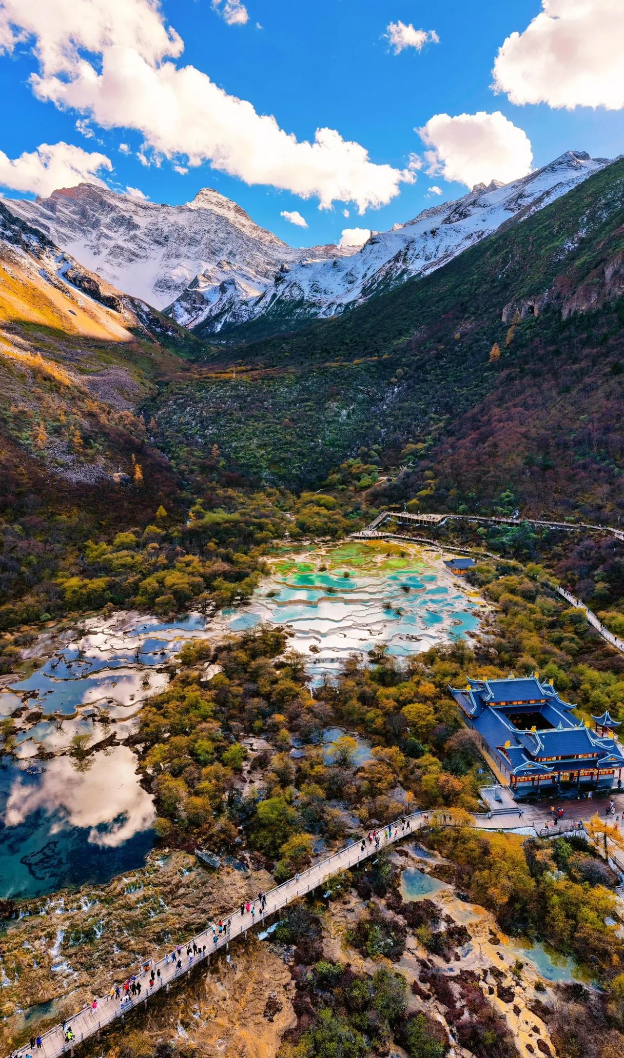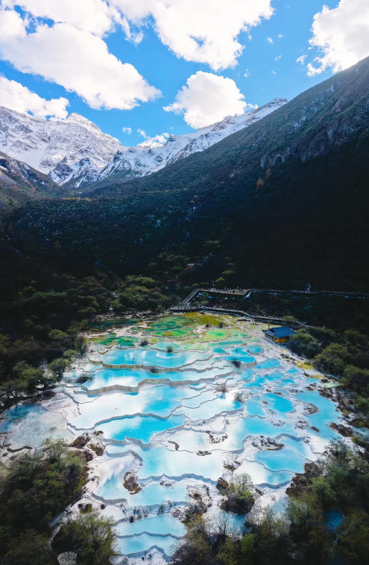 黄龙 无人机白嫖 去晚了 下午3点到的索道排队1小时,退票。 买索道,车停4号停车场。 航拍白嫖需要有4G模块,从1号停车场飞的。 正常爬,到五彩池爬升400 3小时。 海拔3100-3500