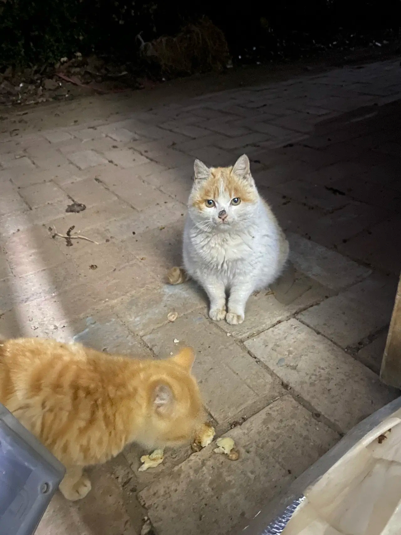 这是一只怀孕的母猫和她的孩子,每到饭点了就领着孩子到处找吃的,每次给她食物都是先让孩子吃,即便自己大着肚子。为母则刚,母爱的无私和伟大,动物如此,何况于人。我们又岂敢轻视小动物,众生平等,又何忍伤害它们每个生命都应该被尊重