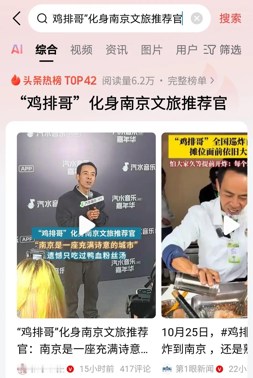 家人们,今天有个超有趣的事儿!你能猜到谁摇身一变,成了南京文旅推荐官吗?竟然是“鸡排哥”! 最近,那个靠6元鸡排十年不涨价走红的“鸡排哥”李俊永,带着他的三轮车和铁锅,来到了南京的汽水音乐嘉年华。他可是上过央视,连美国彭博社都报道过的网红摊主。 “鸡排哥”在音乐节上现场炸着外酥里嫩的鸡排,用他那“情绪价值天花板”的亲和力,吸引了超多乐迷。他的到来,让音乐节跳出了传统框架,给大家带来了耳朵与味蕾的双重暴击。 不得不说,“鸡排哥”这波操作太绝了!他从一个普通摊主成为文旅推荐官,靠的不仅仅是美味的鸡排,更是那份对生活的热情和对文化的传递。这也告诉我们,只要用心,平凡的人也能为城市文化传播出一份力,让更多人看到城市的魅力。