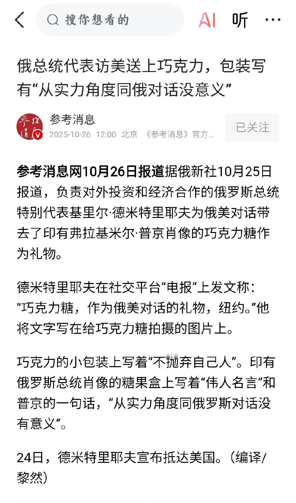 俄美:想不到 个人观点:没有想到,俄罗斯如此巧妙的一刀见血的,委婉的表达强硬态度。 果然不是二百五十年的美国,所能想象的。 俄罗斯现在的策略是一边残酷无情的摧毁式打击,一边是委婉表达-强硬态度,同时留下和谈的窗口。