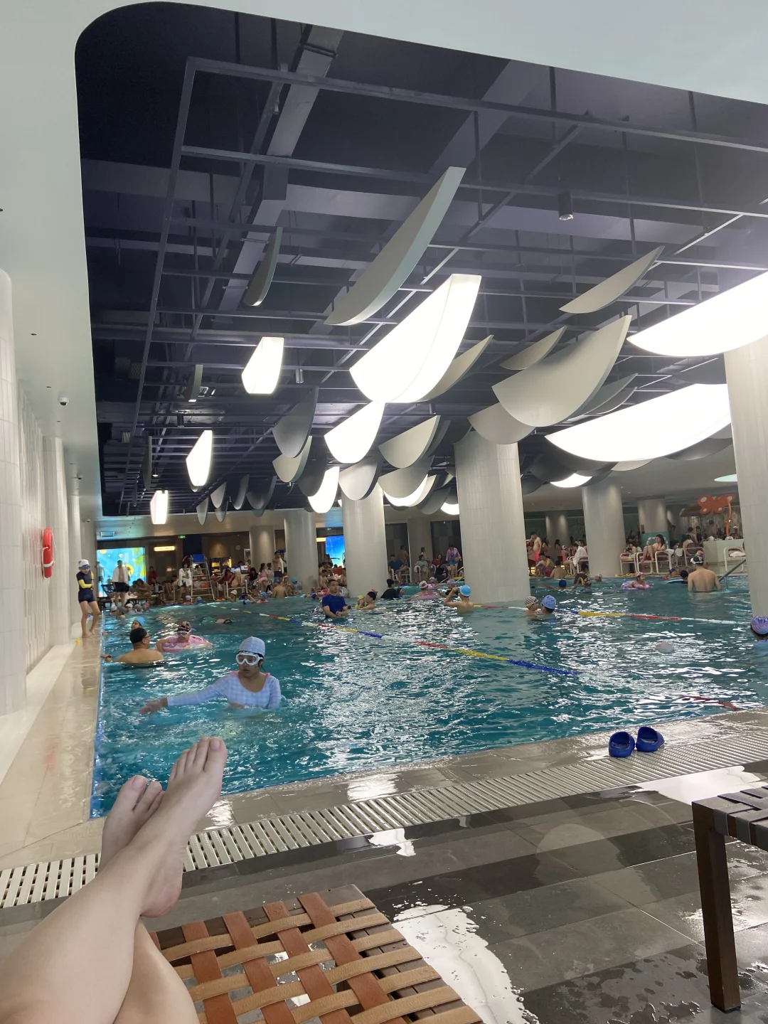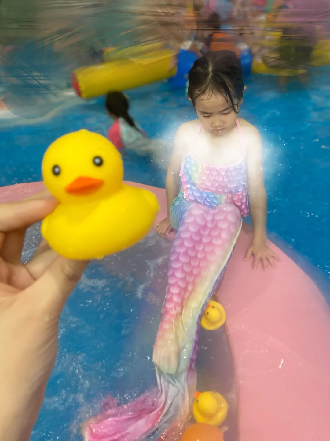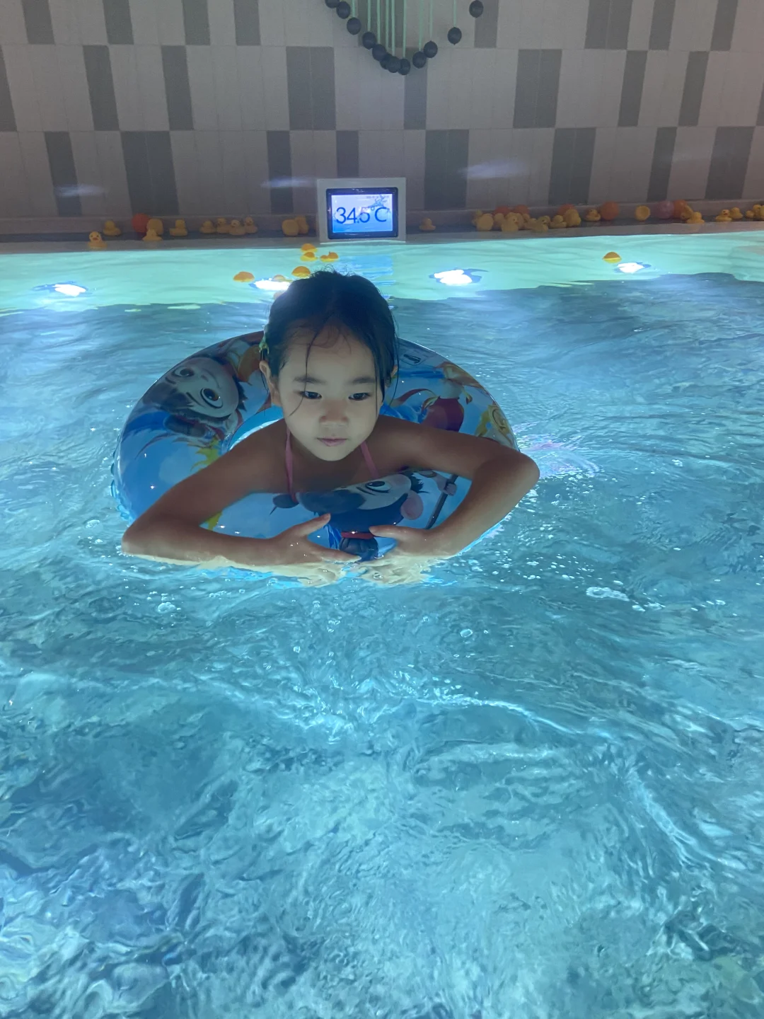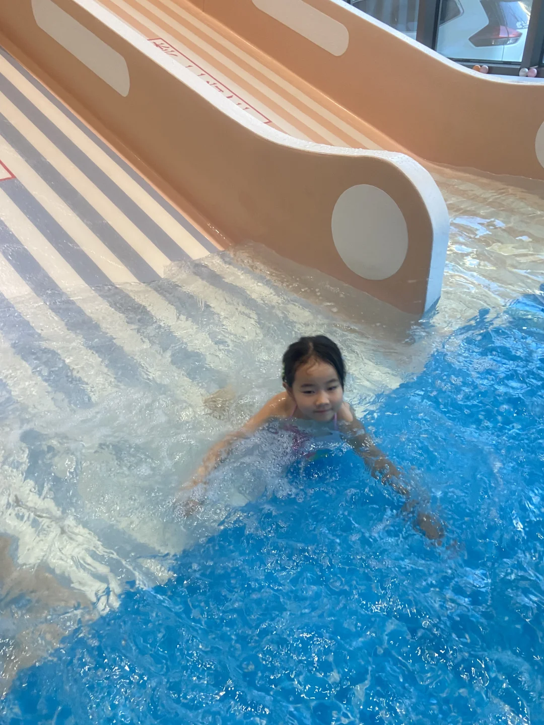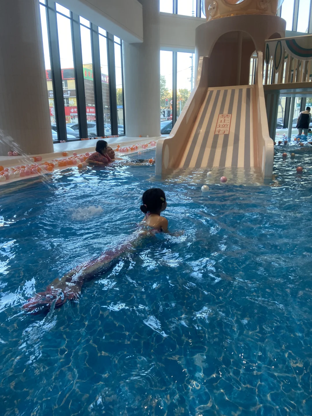 换好泳衣从3楼步行至2楼进去戏水区,一定带个浴巾,玩完水给孩子披上