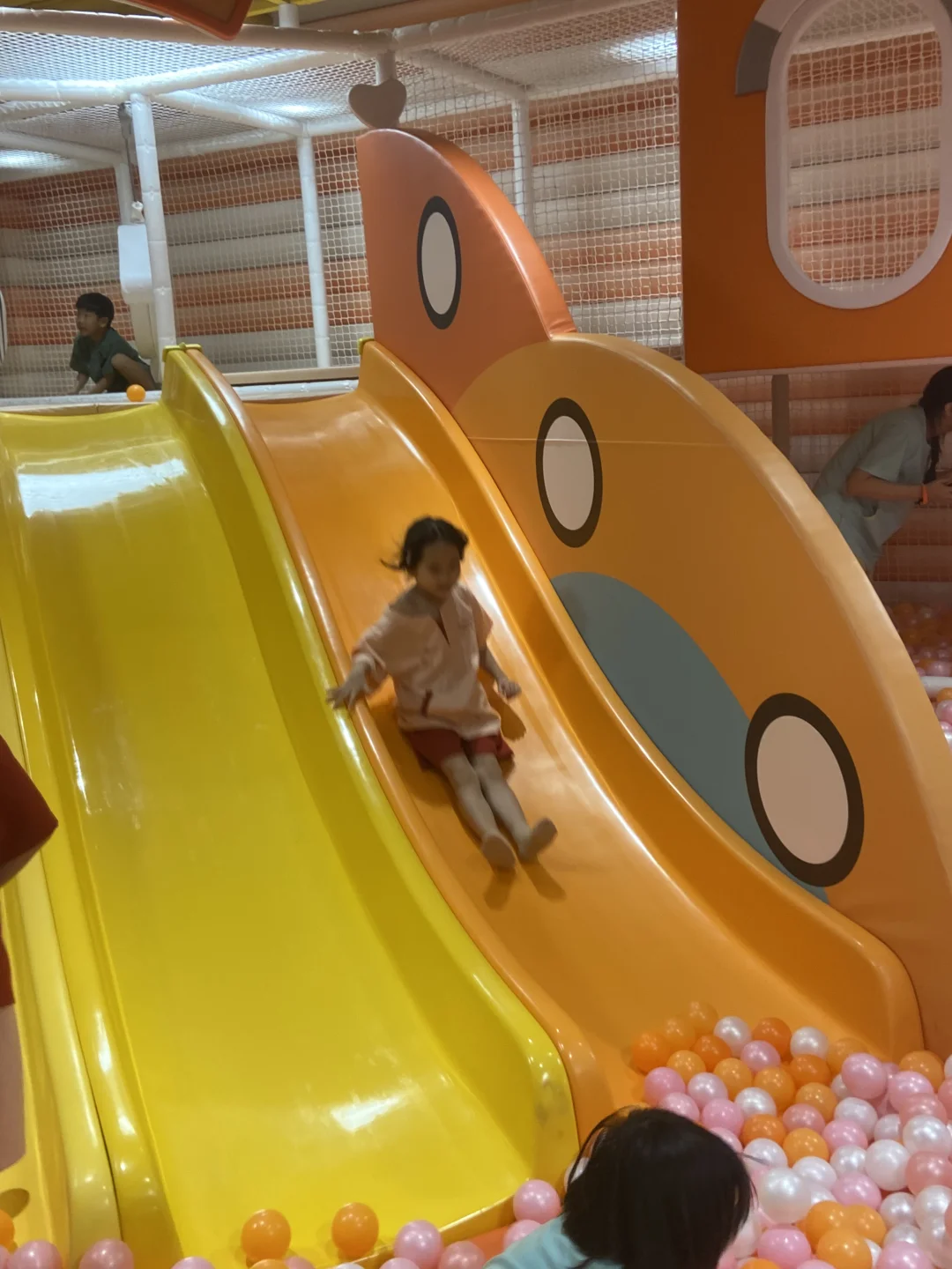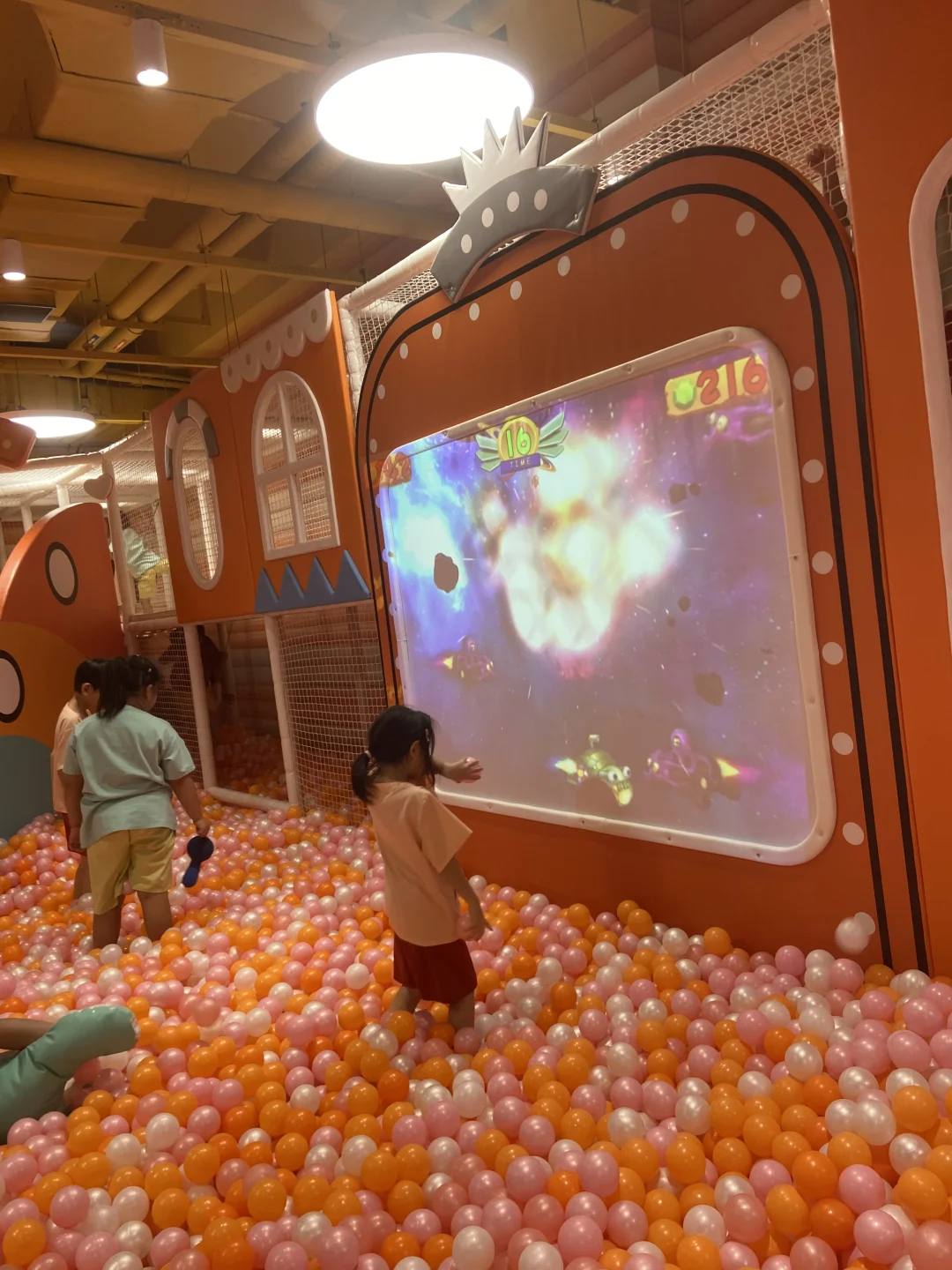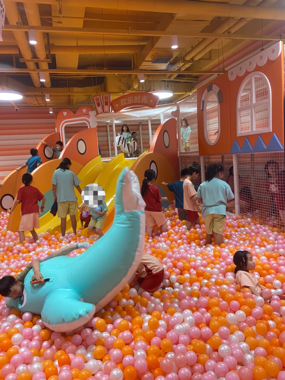 2楼:两侧透明落地窗,一边是儿童戏水区,一边是淘气堡,都一目了然。