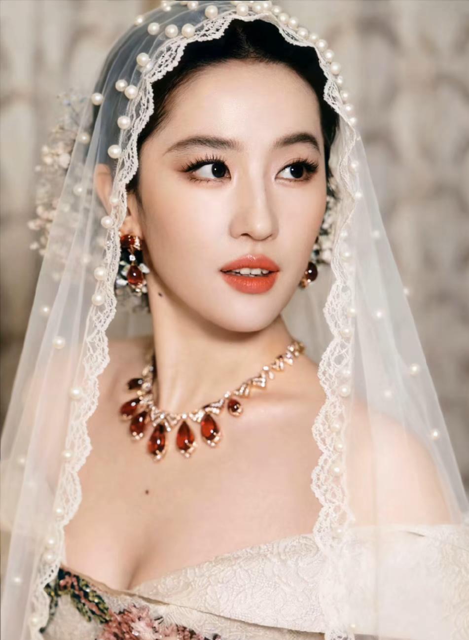 不同时期的刘亦菲身穿红色礼服,气场强。