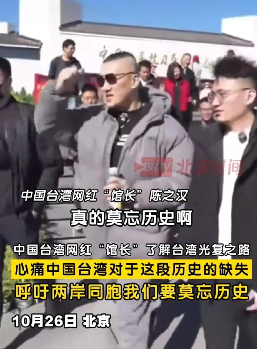 昨天下午馆长一落地北京, 先被咱这儿的堵车“上了一课”——从机场到酒店开了一个半小时,不过这小插曲丝毫不影响行程的意义。 今天汪小菲要亲自当向导,陪他逛北京的知名景点,这地主之谊够实在。最让人点赞的是馆长的一番话,他说大陆设立10月25日台湾光复节特别棒,毕竟台湾自己都快忘了这段历史,身为中国人的大陆却帮着铭记,对比之下,民进党当局想让台湾人忘了祖宗,简直太丢脸了。 馆长很喜欢网友送的歼35飞机模型,还说要收好,说明他看重国家国防力量,高兴国家强盛,这种中国人骨子里爱国的思想,才是两岸同胞该有的样子。毕竟咱们血脉相连,哪能让历史被故意抹去呢! 你如何看待台湾网红馆长赴京获歼35模型