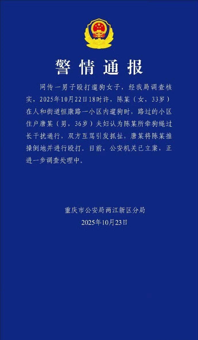 重庆女子遛狗被打的后续是什么啊???遛狗要牵绳 女孩子安全 文明遛狗人人有责 讨