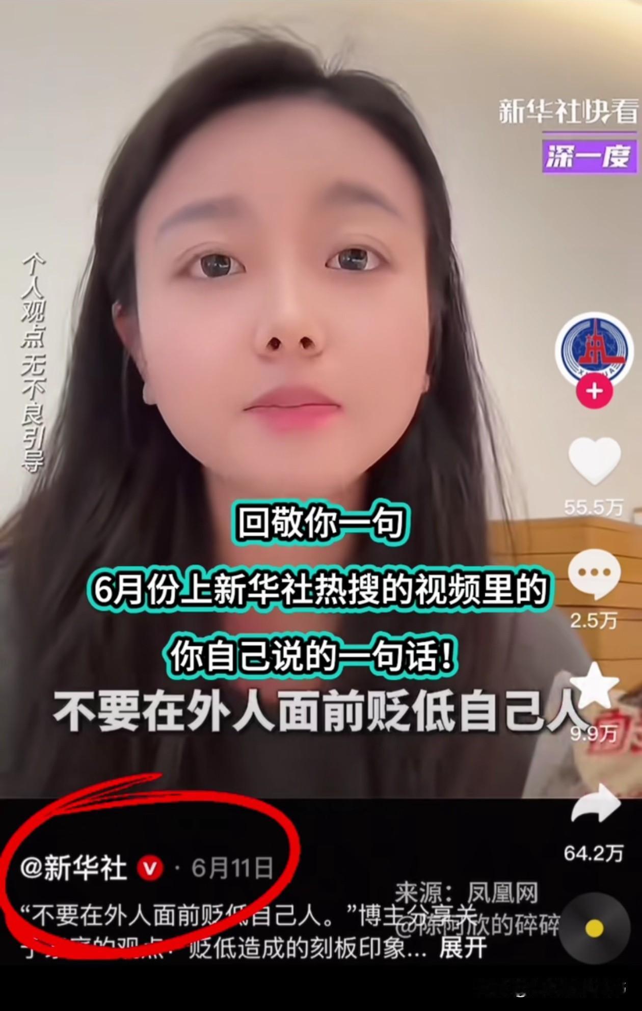这家伙现在火爆韩国网络,明明六月份还在视频里一本正经教粉丝“别贬低自己人,不然会被外人瞧不起”,话说得那叫一个漂亮。结果一翻墙到外网,立马换了个嘴脸,对着外国人狂吹彩虹屁,把一向傲娇的韩国人都夸的脸红了,其实这也没啥,毕竟想吃那碗饭,说几句好听话不寒碜。 可气的是她为了捧外人,居然扭头就踩自己人——这就太打脸了。毕竟当初可是她自己亲口说的“别贬低自己人”,道理她比谁都懂,之前还有大V夸她三观正呢。谁想到才过两个月,为了恰饭直接把自己说的话当屁放。 现在可好,韩国网友都看清了她两副面孔,舆论也炸了。今天她能为了捧外国人踩自己人,明天就能为了别国人踩韩国人——这种人根本没啥底线可言。 说到底她还是没搞明白,现在早不是那个“内外有别”的旧时代了。以前你在国内说一套,国外说一套,两边信息不通确实能糊弄。可现在全网都是连着的,你在这头夸上天,转头就能被截图甩到对面去。 这姐们儿错就错在太自作聪明:以为国内网友看不到外网内容,外国人也懒得翻墙看她在国内说啥。结果呢?两个视频被扒出来一对比,直接翻车现场。 她错就错在算盘打得太精:对国内观众就猛灌“团结自尊”的鸡汤,对外国观众就摆出“谦卑崇拜”的姿态——想着通吃两边市场,赚双份的钱。可惜他们忘了,互联网是有记忆的,你演的戏越多,穿帮的时候就越难看。 说到底,这位姐不是第一个玩脱的,也绝不会是最后一个。她的故事倒是给后来者提了个醒:在网上混,你不仅得对自己说的每句话负责,还得保证这些话放在一起对比时不打脸。 想通吃两家饭,最后愣是被两家饭给噎着了。 这结局,可真够讽刺的。