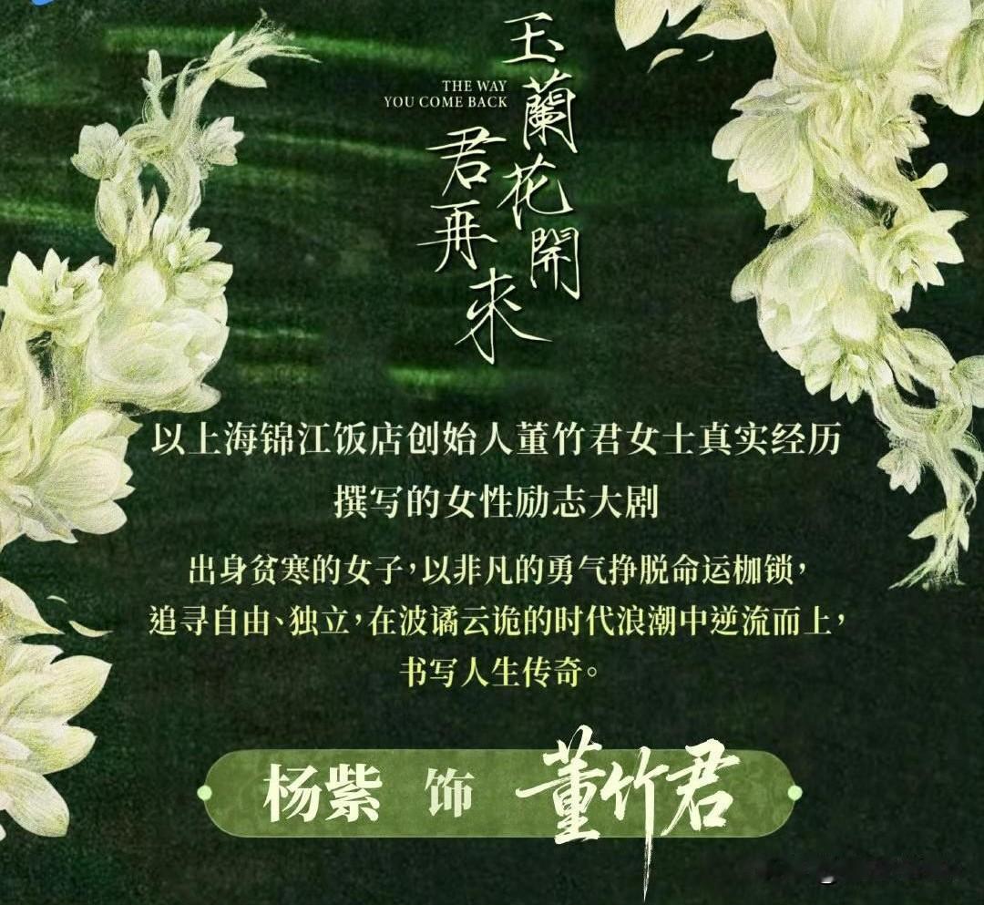 10月26日,杨紫《玉兰花开君再来》官宣,看到一句话,影视寒冬,杨紫热到中暑了! 不仅一部剧接着一部剧无缝进组,而且每部剧都是S➕➕的顶配大制作,相比其他人同龄人,杨紫不仅正当红,而且一骑绝尘! 看完这部剧的故事梗概,对这部剧,以及杨紫饰演的这个角色更加充满期待,不觉得演员很神奇么,她们能将纸片人塑造成型,让观众代入故事,造就一个鲜活的影视生命! 在内娱,科班出身的专业演员会比半路出家的演员更懂得一部剧一个角色的侧重点,在表演上更加的专研,塑造的角色会更加的富有生命力,半路出家的演员会更多的带有自己的色彩,董竹君,这种有质感厚重的真人真事真事的人生故事,更需要专业得演员去塑造,杨紫绝对是最佳人选!