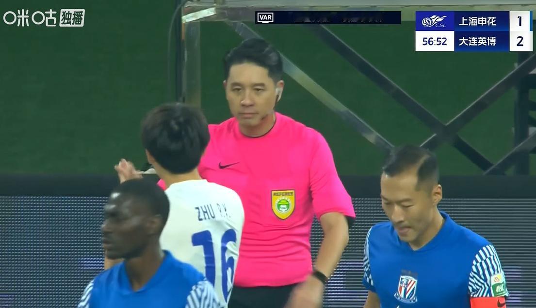 上海申花VS大连英博路易斯禁区内倒地,主裁看过VAR后认为不是点球,申花仍1