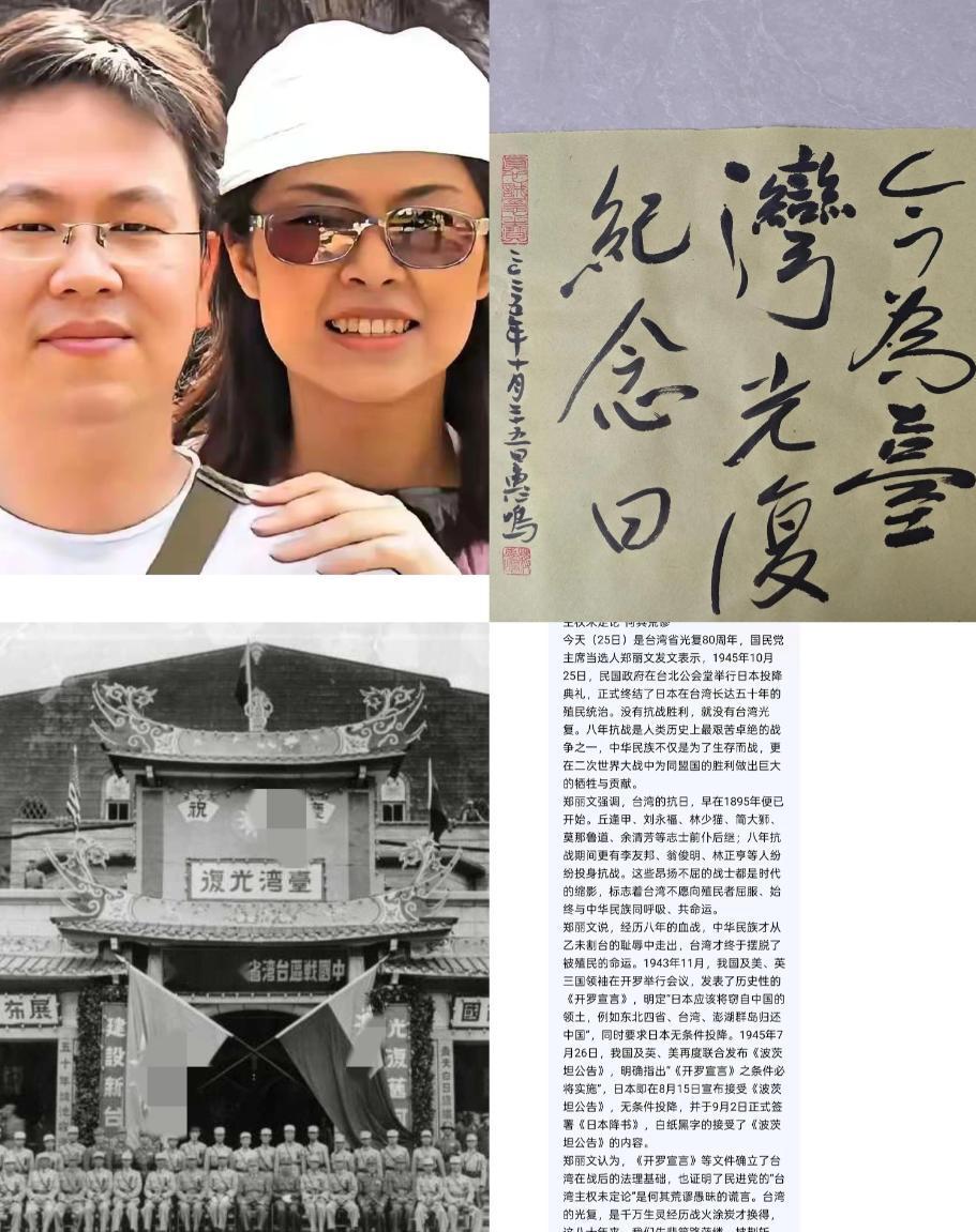 郑丽文10 月 25 日没来北京,但发表了纪念文章。 这日子可不是随便过的,既是国家头一个专门设的纪念日,也是台湾第 79 个光复节,两个说法其实指的是同一件事 —— 台湾从日本殖民统治里走出来的日子。郑丽文选在这天发文,显然是摸准了这个日子的分量。 她在文章里把话说得很清楚,1945 年的今天,台北市公会堂 —— 就是现在的中山堂 —— 办了受降仪式。就这么一个仪式,把日本在台湾五十年的殖民统治给终结了。 她特意点了句关键的,没有抗战胜利,哪来的台湾光复?这话其实就是把历史的底子亮出来了,台湾能摆脱殖民,根本上是全民族抗战打出来的结果,不是凭空掉下来的。 虽说她这会儿没到北京来,但这篇纪念文章的意思传得挺明白。毕竟她刚当上国民党主席没几天,之前就一直喊着 “九二共识” 是两岸交流的通关密语,还说要让台湾人能自豪地说自己是中国人。 现在借着光复节发文,等于是把历史和她一直主张的立场串上了,用过去的事印证现在的主张。 想想也挺有意思,现在岛内有些人总爱绕开历史说事儿,要么含糊其辞,要么干脆歪曲,把五十年殖民说成别的样子。 郑丽文这回直接提受降仪式,提抗战胜利和台湾光复的关系,等于是在历史事实面前立了块牌子,啥都明摆着,容不得瞎掰。 她这篇文没写啥虚头巴脑的话,全是实在的历史节点。1945 年 10 月 25 日这个日子,台北市公会堂那个地方,还有 “终结殖民统治” 这个结果,每一个词都戳在关键点上。 这可不是随便凑的内容,是把台湾光复最核心的来龙去脉说透了 —— 没有全民族浴血奋战的抗战胜利,台湾想从日本手里收回来根本不可能。 而且这发文的时机也挺有说道,刚当选党主席没几天,正是定调子的时候。之前她就说过,只要能推动两岸和平共荣,什么人都愿意见,什么工作都愿意做,甚至提到了未来要赴大陆交流。 现在借着光复节发文,等于是用历史给她的两岸立场打底子:连五十年殖民都结束了,两岸同属一个民族的根脉更断不了。 其实光复节本身就是本活历史,79 年过去,那些受降仪式上的细节可能没人能全记得,但 “台湾是中国的一部分” 这个结果是刻在历史里的。 郑丽文发文提这些,说白了就是不想让这段历史被冲淡,更不想让有人借着时间久了就乱改说法。 她没在文章里扯别的,不聊当下的政治博弈,也不提岛内的派系纷争,就盯着 1945 年那个瞬间说事儿。这种说法反而更有力量,历史本身就是最硬的理据,不用添油加醋,把事实摆出来,大家心里都有数。 虽说人没来北京,但文章里的意思传得挺远。毕竟光复节不是台湾单独的节日,是整个国家历史里的重要一页,郑丽文选在这天发声,等于是在呼应这份共同的历史记忆。 之前她回应大陆贺电的时候就说过,两岸同属炎黄子孙,现在借着光复节再提抗战胜利的意义,等于把 “民族” 这个根又强调了一遍。 现在岛内有些人总爱把历史拆得七零八落,想把台湾从民族历史里摘出去,郑丽文这篇纪念文章算是直接顶了回去。 受降仪式是真的,五十年殖民终结是真的,抗战胜利奠定基础也是真的,这些事实摞在一起,就是最扎实的回应。 说到底,这篇文章不在于文字多华丽,也不在于有没有当面来说,关键是把该说的历史说清楚了,把该认的根认明白了。 79 年过去,台湾光复的意义从来没变过,郑丽文今天发文提这些,就是想让人别忘了这个根本。 参考文章:李迪明888 10.25 10月25日(今天),郑丽文在台湾光复纪念日《…反法西斯诗选》新书发表会上,发表演讲:我们愿意为两岸和平同尽一份力