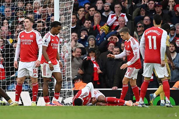 一个是阿森纳中卫加布里埃尔,他后点抢点,不惜小腹撞在了门柱上。