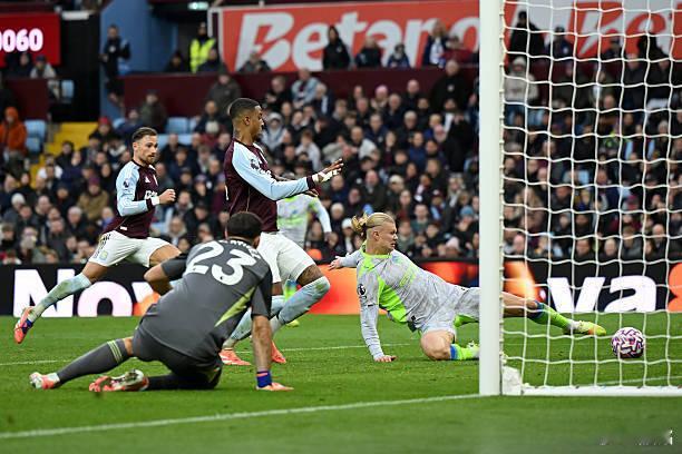 另一个是曼城中锋哈兰德,同样是后点抢点,并且确保球进了,可惜传球的队友越位,进球无效。哈兰德为了这个球,同样是小腹撞在了门柱上。