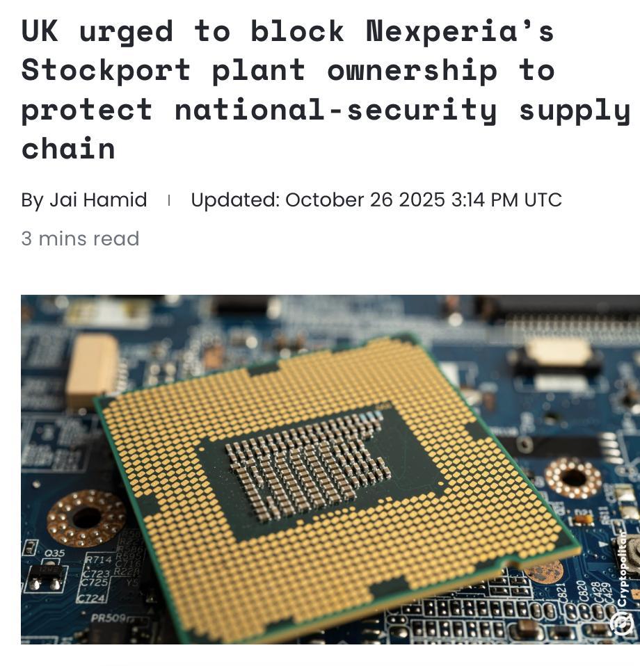 外媒:英国多位政界人士呼吁政府出于国家安全考虑,强制荷兰芯片公司安世半导体(Nexperia)出售其位于英格兰斯托克波特的芯片工厂。该厂年营收约1.92亿英镑,是英国最大芯片制造基地之一。 Nexperia自2019年被中国企业闻泰科技收购,其总部设在荷兰奈梅亨。荷兰政府本月已以经济安全为由接管Nexperia总部,并撤换其中国籍CEO张学政。 英政府回应称正密切关注事态,并已投入7,500万英镑加强本国半导体产业。