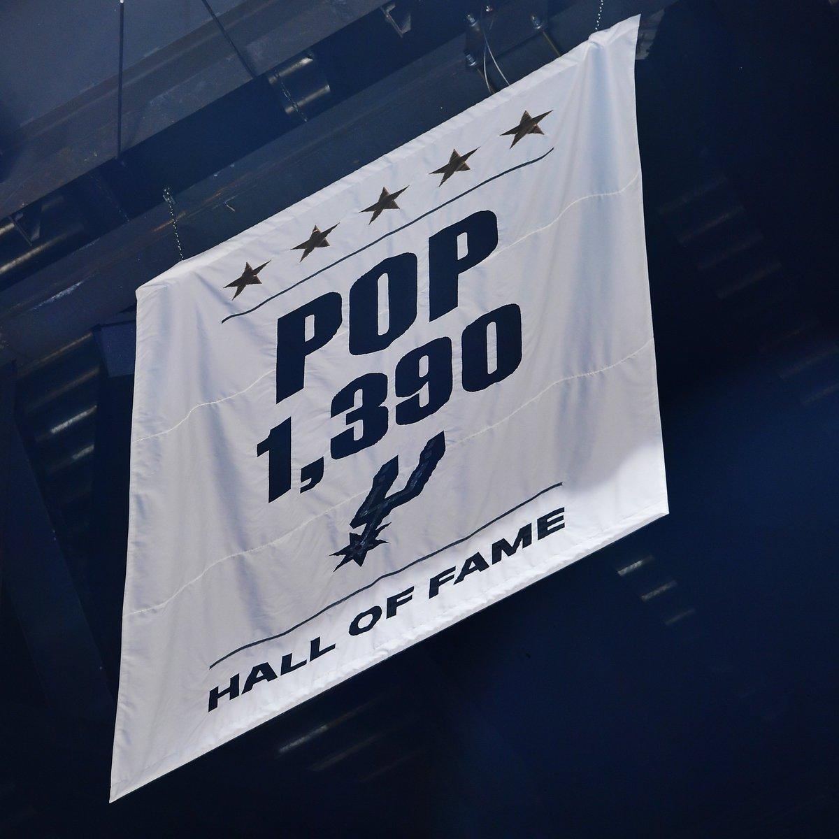 圣安东尼奥马刺传奇前主教练格雷格·波波维奇一向不喜欢处于聚光灯下,他更愿意把关注留给球员。因此,马刺在向波波维奇致敬时也选择了低调的方式。 在球队退役球衣和荣誉横幅区域,马刺新挂起了一面横幅,用以表彰波波维奇为球队做出的贡献。横幅上写着“Pop 1,390”,象征他所创造的NBA历史常规赛胜场纪录(1,390场)。横幅顶部的五颗星代表波波维奇执教期间球队获得的五次NBA总冠军。