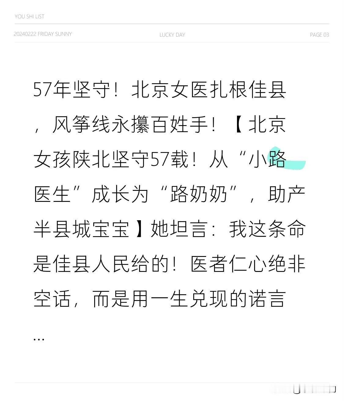 57年坚守!北京女医扎根佳县,风筝线永攥百姓手! 【北京女孩陕北坚守57载!从“小路医生”成长为“路奶奶”,助产半县城宝宝】她坦言:我这条命是佳县人民给的!医者仁心绝非空话,而是用一生兑现的诺言👍 57个春秋过去,这位北京出身的女性已成为陕北佳县人口中的“路奶奶”,她亲手迎接了县城近半的新生儿到来! 1968年,路生梅从北京第二医学院毕业,毫不犹豫地奔赴陕西佳县。那时佳县医疗条件极差,设备简陋、资源稀缺,但她靠着坚强意志坚持下来,从青春岁月到白发苍苍,从未退缩。 她建立了佳县第一家正规儿科科室,培训了50多位儿科医护人员。普及新法接生技术后,新生儿破伤风的死亡率大大降低。无数家庭祖孙三代都找她看病,这实实在在体现了“医者仁心”的真谛! 最打动人的是她的誓言。起初她自愿写下“为佳县人民服务50年”,退休后却改为“生命不息,服务不止”。现在她已经80多岁了,仍然每周出诊,手机全天开机,随时准备响应求助。 她把自己比作风筝,线永远握在百姓手里。这份深沉的情感,让她在这里坚守了整整57年! 眼下年轻人常抱怨996工作制辛苦,但看看路奶奶,一辈子在艰苦地区从事医疗救助。我们是不是该给这些基层医护更更好的待遇?怎样才能吸引更多年轻人愿意去基层奉献自己的力量呢? 人文医者 环县籍医生 北京女医生 北大女医生