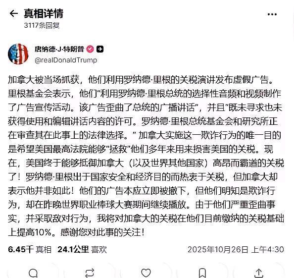 加拿大一条反关税的广告,戳中了川普的肺管子,川普愤而反击,立马给加拿大加征10%的关税。加拿大个软蛋,吓得立马撤了广告,怕个毛线啊!
