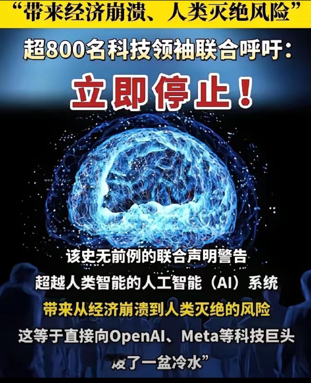 被3000多位全球大佬的联名呼吁惊到了!AI教父、苹果创始人、中国图灵奖得主全凑一块儿,就为了喊停超级智能研发,这阵仗真不是小题大做。 要知道这可不是普通AI,是能在所有领域碾压人类的终极智能,专家都直言现在连控制它的靠谱方法都没有。更讽刺的是,一边是科技公司疯狂竞赛抢进度,一边是老板们扎堆警告风险,这种"边造雷边喊小心"的操作实在矛盾。 其实核心问题从来不是AI本身,而是人类的急功近利。73%的人都支持严管,偏偏行业陷入"你停我追"的内耗。真不是反对科技进步,而是连安全底线都没摸清,就忙着冲终点,这不是创新是冒险。 与其赌人类能掌控未知,不如先把监管规则立起来。你觉得该给超级智能研发踩刹车吗?还是相信科技公司能守住底线?