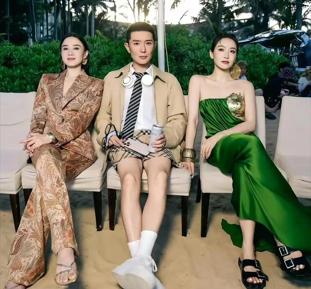 哇哦,二宋同框啦:镜头中身着印花西装的小宋佳肌肤若雪,眉目如画,双腿修长,鞍鼻长脸;穿着一袭绿色抹胸裙的宋茜身形纤巧,修项秀颈,细眉飞扬,脚趾难看,两个人虽然妆容精致,但依旧是满脸的沧桑感哈!问一下中间这位穿着格子短裤,手拿眼镜的潮男是谁?